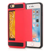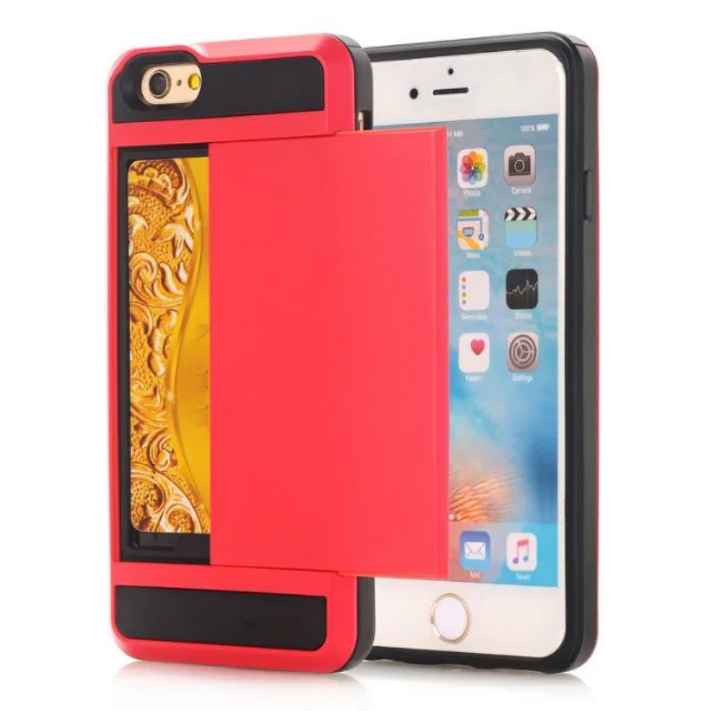 PC & TPU Dual Layer Scratch-proof Slide Card Holder Case for iPhone SE (2020)/SE (2022)/8/7 4.7 inch- Red