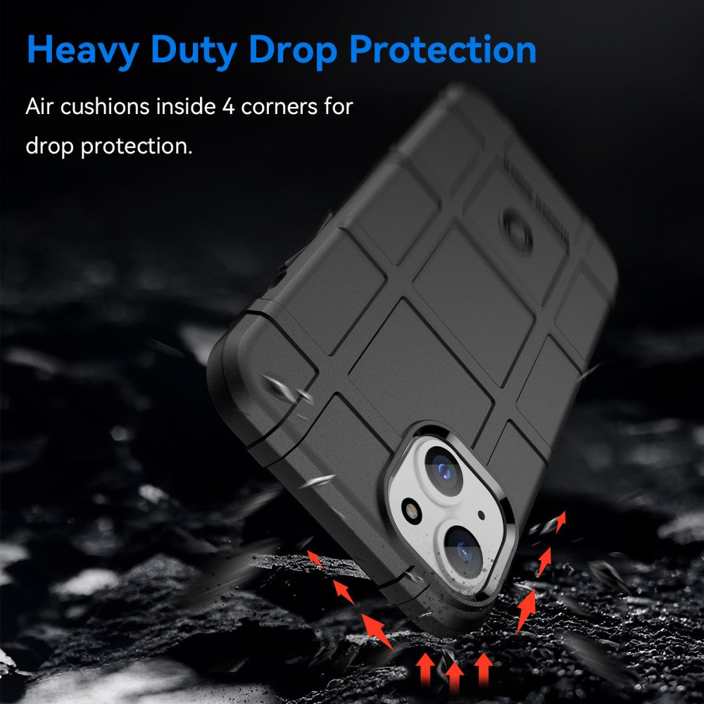 Rugged Shield protecting case for iPhone 15 Plus is the champion when it comes to protection against bumps and impacts with air cushions in the corners. The good fit and flexible material makes phone operation comfortable and smooth. The grip-friendly material keeps the shell free from fingerprints and prevents the phone from slipping away from your hand.