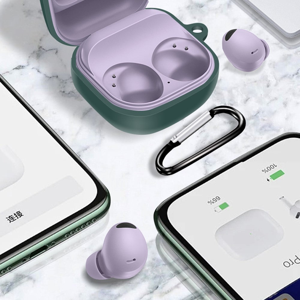For Samsung Galaxy Buds2 Pro / Buds 2 / Live / Pro Silicone Cover Bluetooth Earphone Anti-drop Case with Anti-lost Buckle - Red