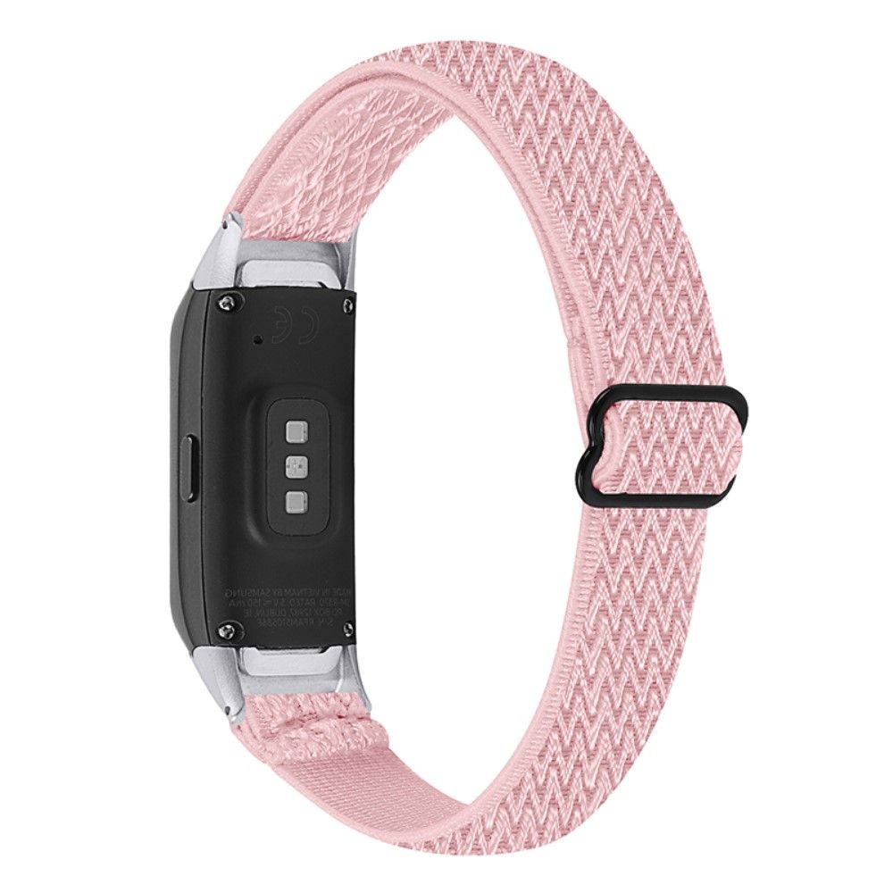 For Samsung Galaxy Fit R370 Woven Elastic Watch Band Adjustable Nylon Replacement Strap Wristband - Pink