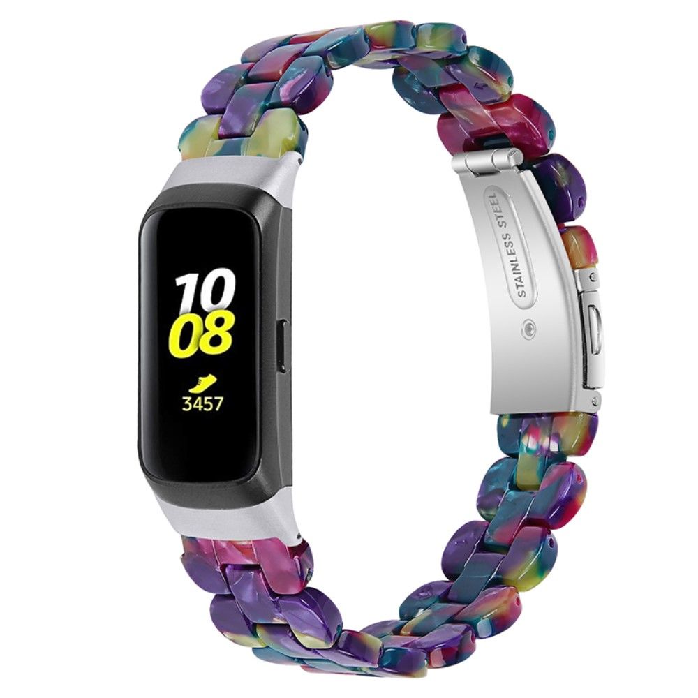 Stylish Oval Resin Smart Watch Band Replacement Wrist Strap with Stainless Steel Buckle for Samsung Galaxy Fit SM-R370 - Purple / Green