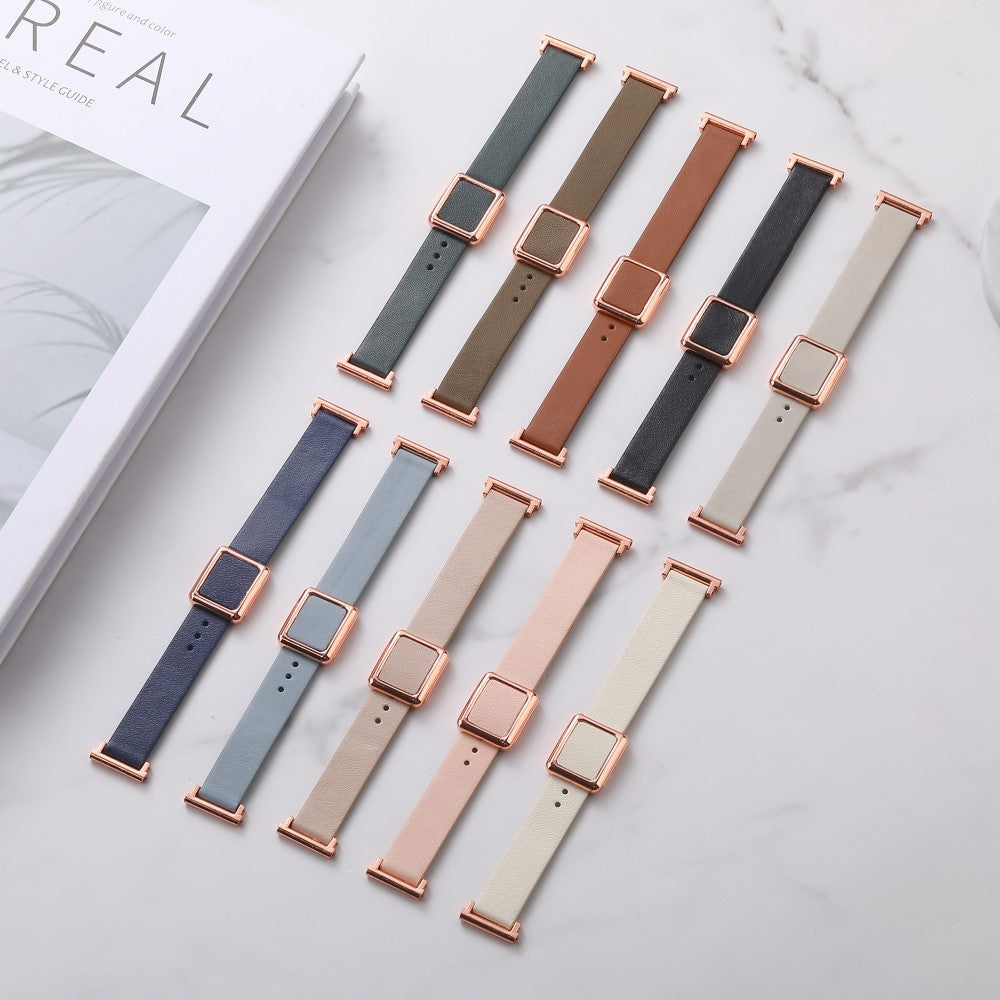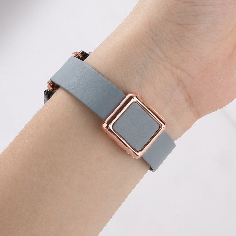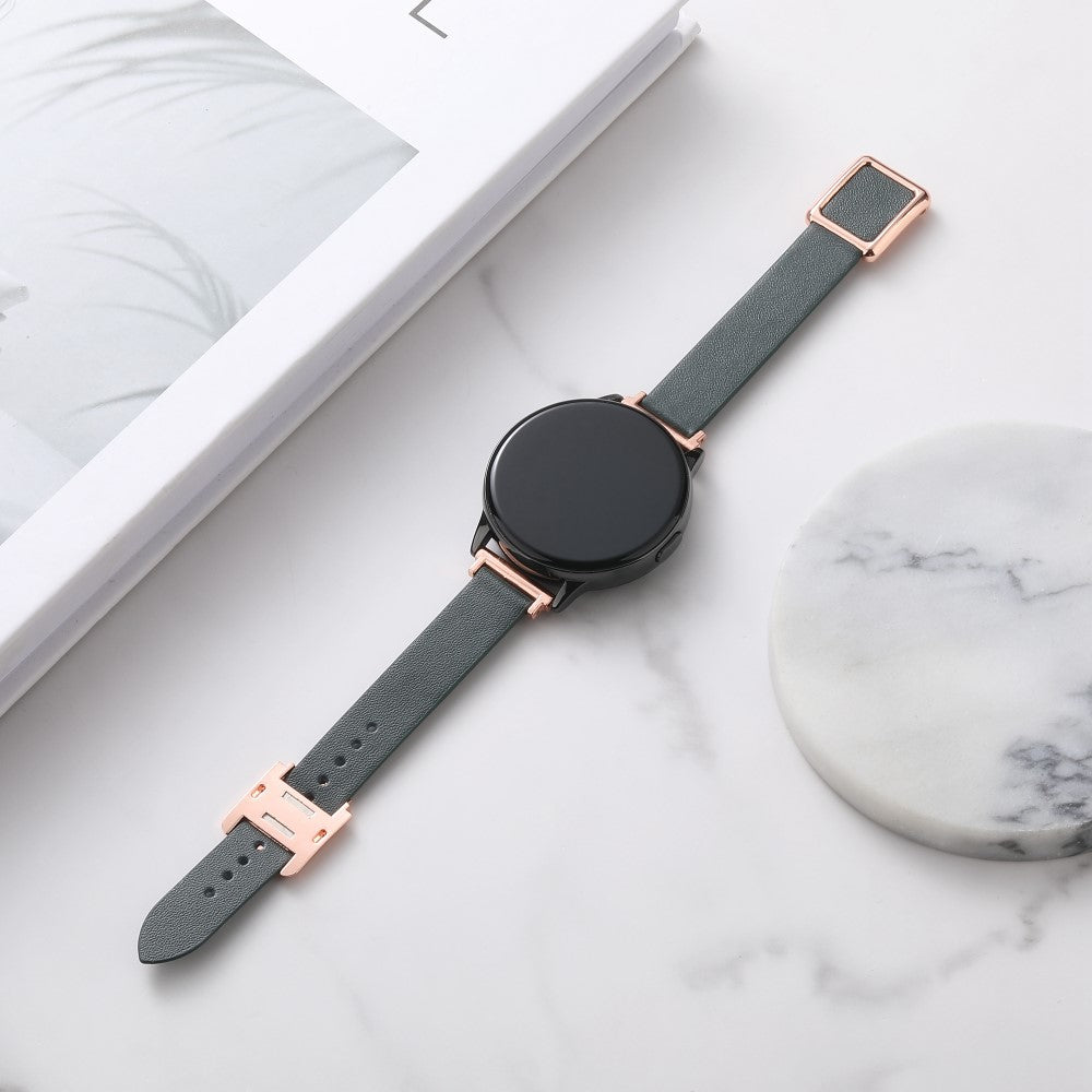 Samsung Galaxy Watch 20mm Universal Leather Strap with Magnetic Folding Buckle - Dark Green / Rose Gold Buckle and Rose Gold Buckle