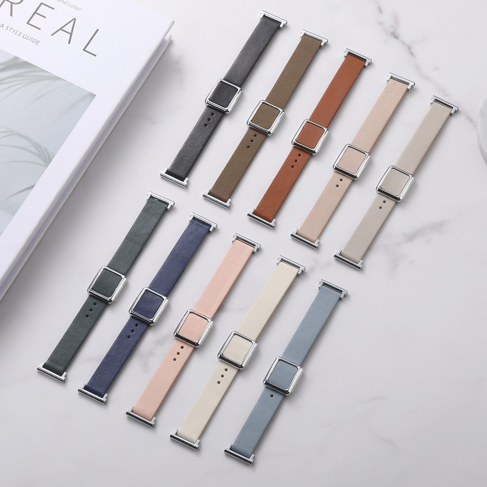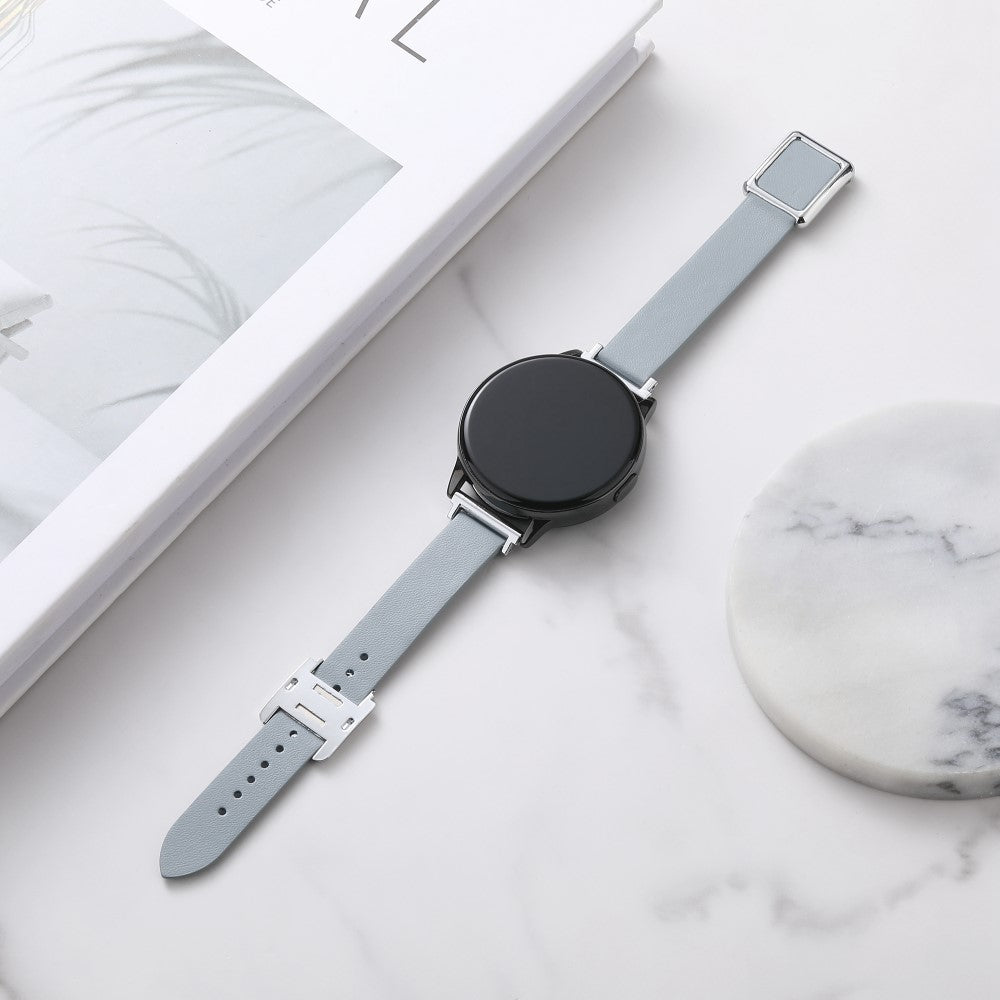 Samsung Galaxy Watch 20mm Universal Leather Strap with Magnetic Folding Buckle - Linen Blue / Silver Buckle and Rose Gold Buckle