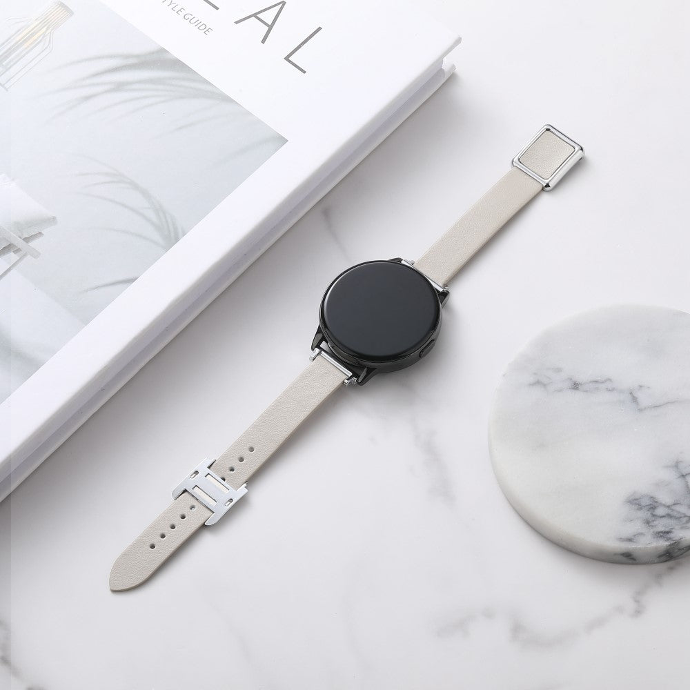 Samsung Galaxy Watch 20mm Universal Leather Strap with Magnetic Folding Buckle - Starlight / Silver Buckle and Rose Gold Buckle