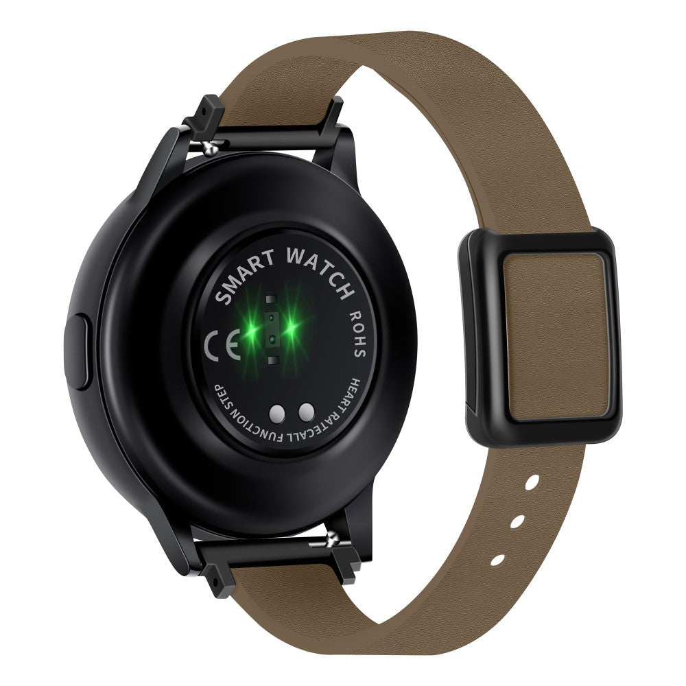 Samsung Galaxy Watch 20mm Universal Leather Strap with Magnetic Folding Buckle - Tan / Black Buckle and Rose Gold Buckle
