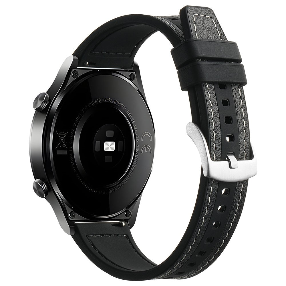 Samsung Galaxy Watch6 Classic 47mm 43mm / GarminActive 5 20mm Watch Band Cowhide Leather Silicone Strap - Black
