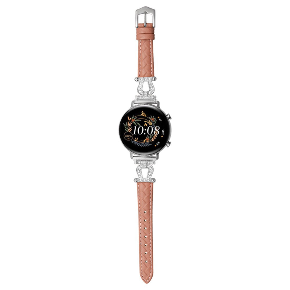 Samsung Galaxy Watch6 Classic 47mm 43mm / GarminActive 5 Watch Strap 20mm U-shape Cowhide Leather Band - Bean Pink / Silver Buckle Buckle