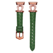 Samsung Galaxy Watch6 Classic 47mm 43mm / GarminActive 5 Watch Strap 20mm U-shape Cowhide Leather Band - Green / Rose Gold Buckle Buckle