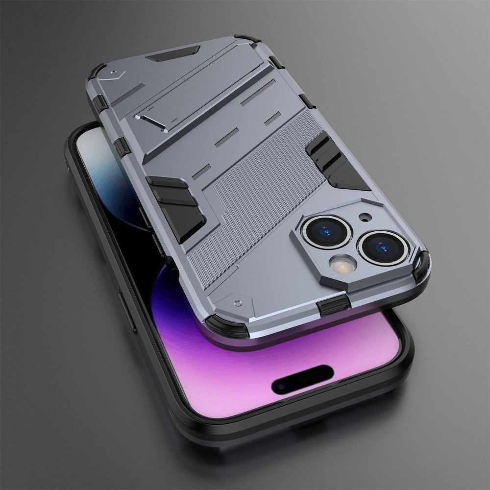 This is a new, modern and updated version of its predacessor, with a slick look and improved all around. Its assymetric design allows for better grip when holding the iPhone 15 Plus, and the adapted kickstand fits into the cover's ensamble. It has two flat surfaces, allowing the phone to stand either vertically or horizontally on its own - the future truly is now.