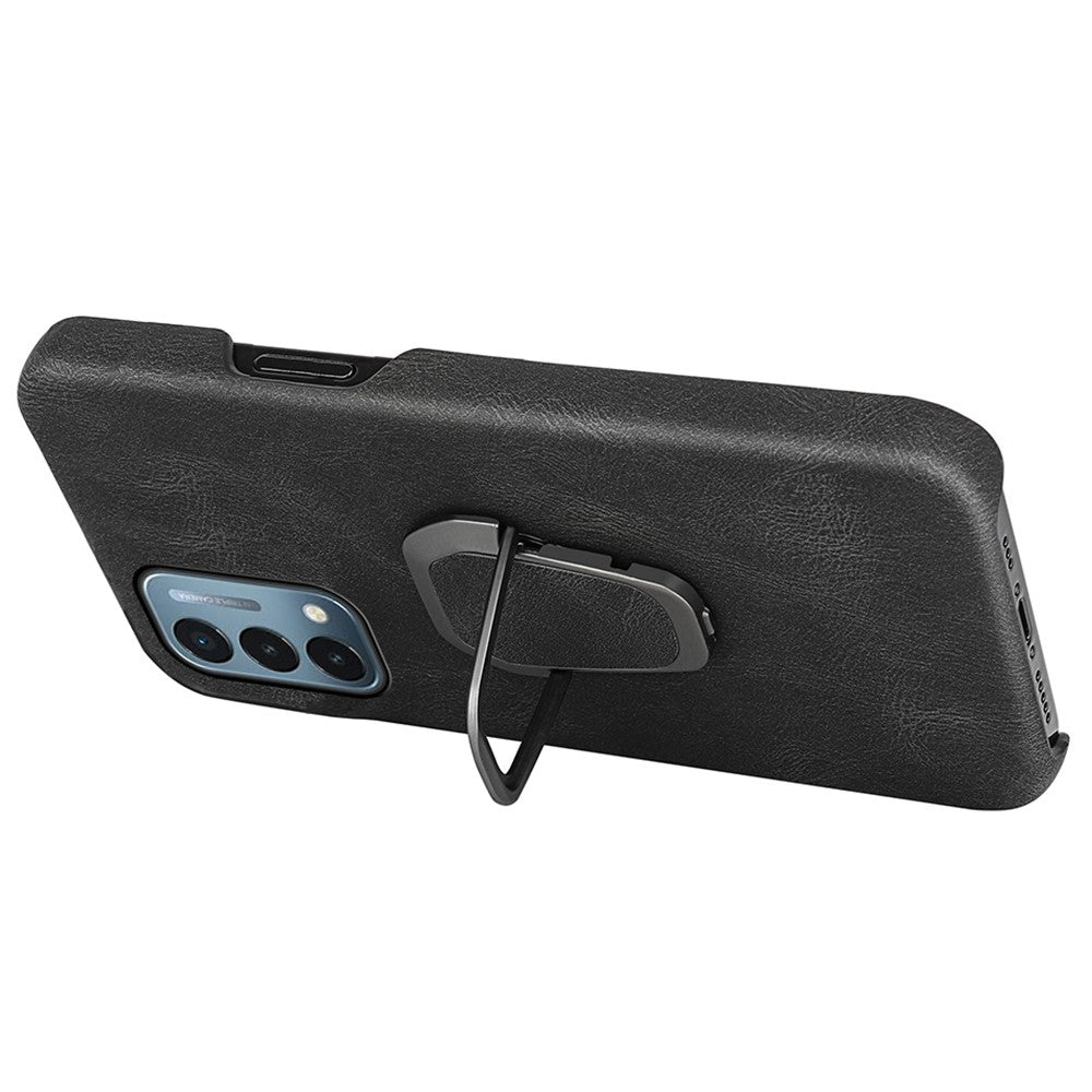 Unlike its similar covers with square or ring-formed kickstands, this one gets the best of both worlds, with no sharp edges but also longer reach than the ring, allowing it to stand more efficiently. It's oval, smooth shape also makes for a stylish design - one fitting your OnePlus Nord N200 5G. The case itself is made of a coated PU-leather, giving it great resistance to the regular wear and tear one can expect from using a phone.