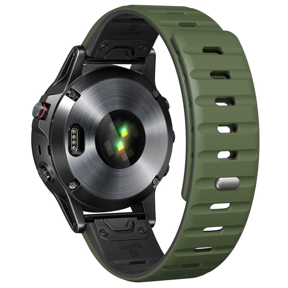 Silicone Strap Garmin Fenix 8 51mm / Enduro 3 / Enduro 2 26mm Quick Release Magnetic Watch Band - Army Green+Black