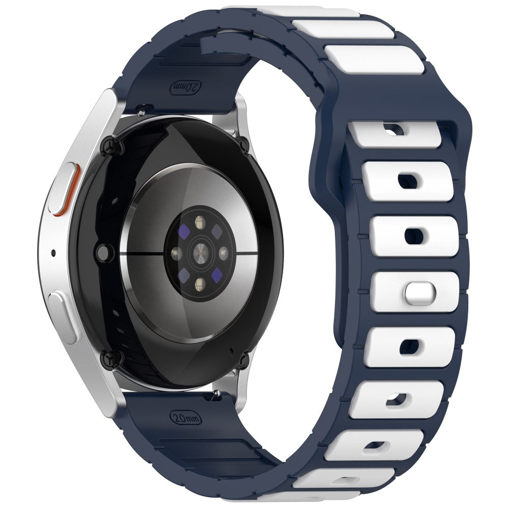 Silicone Strap Samsung Galaxy Watch7 44mm 40mm / Watch6 44mm 40mm / Watch6 Classic 47mm 43mm Universal 20mm Dual Color Watch Band - Midnight Blue+White