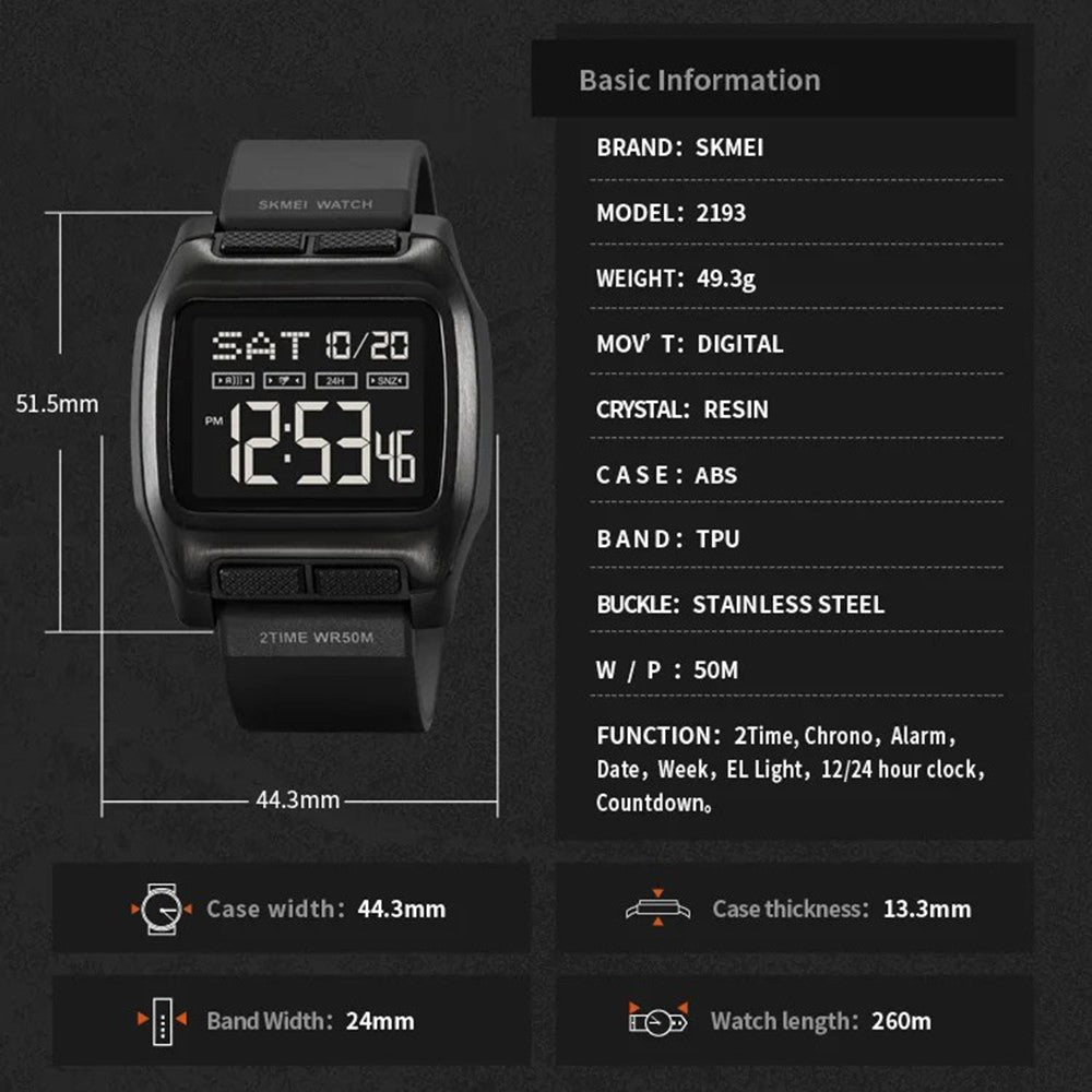 SKMEI 2193 Square Digital Watch with EL Backlight - Black+Gold