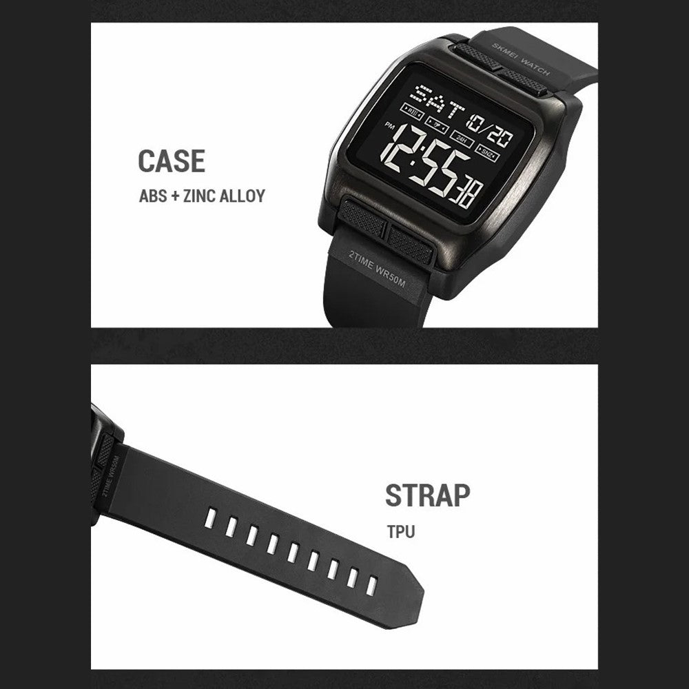 SKMEI 2193 Square Digital Watch with EL Backlight - Black+Silver