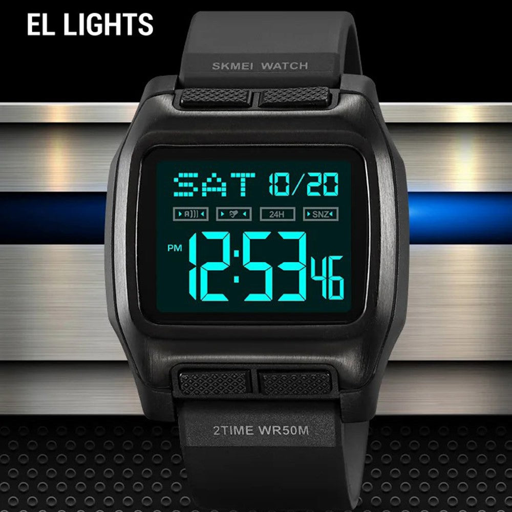 Stay effortlessly stylish with this square electronic watch, perfect for both students and business professionals. The soft, flexible strap is easy to adjust for a comfortable fit. Featuring an EL luminous function, telling time in the dark is a breeze. With a stopwatch, date display, day of the week display, and alarm clock function, this watch is as practical as it is convenient. The 50m daily waterproof function means you can wear it while swimming, washing your hands, or even in the rain. Stay on top of your schedule and look good doing it with this versatile and functional timepiece.