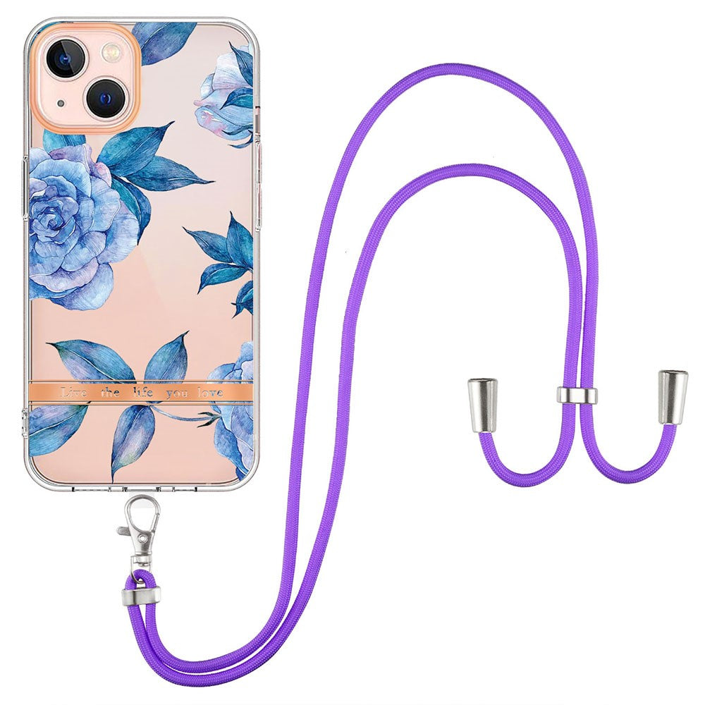 Slim and durable softcover with lanyard for iPhone 13 - Blue Peony