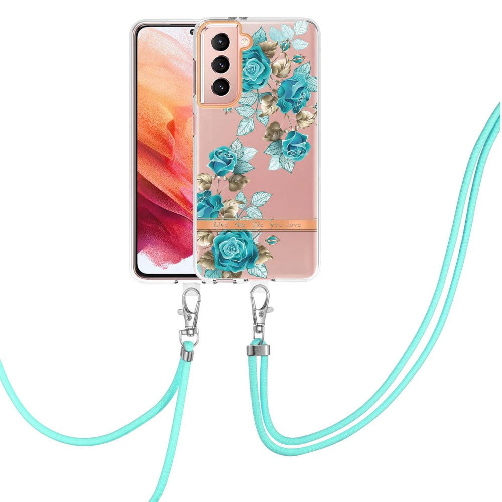 Slim and durable softcover with lanyard for Samsung Galaxy S21 - Blue Rose