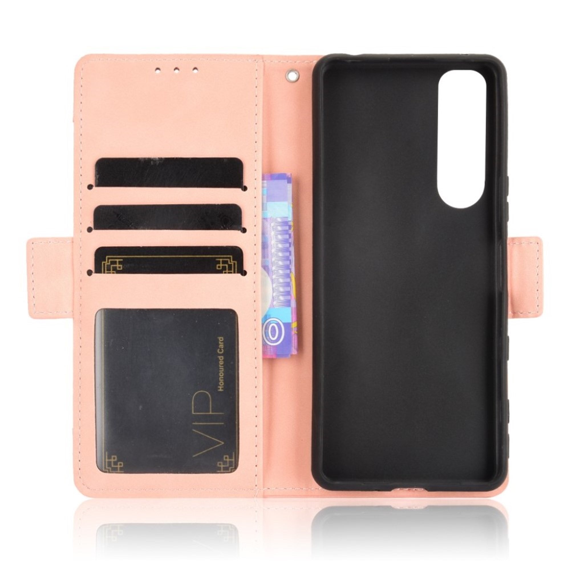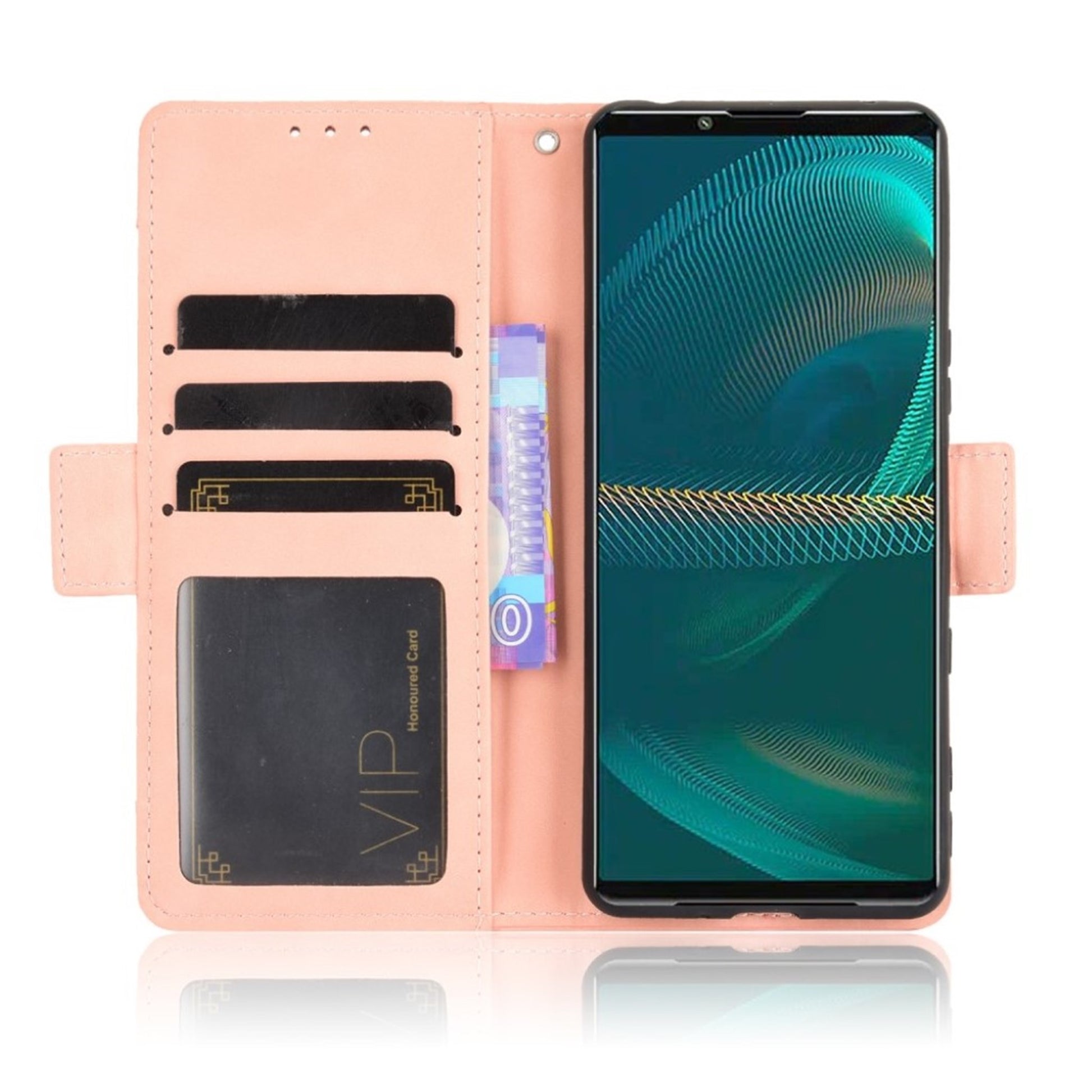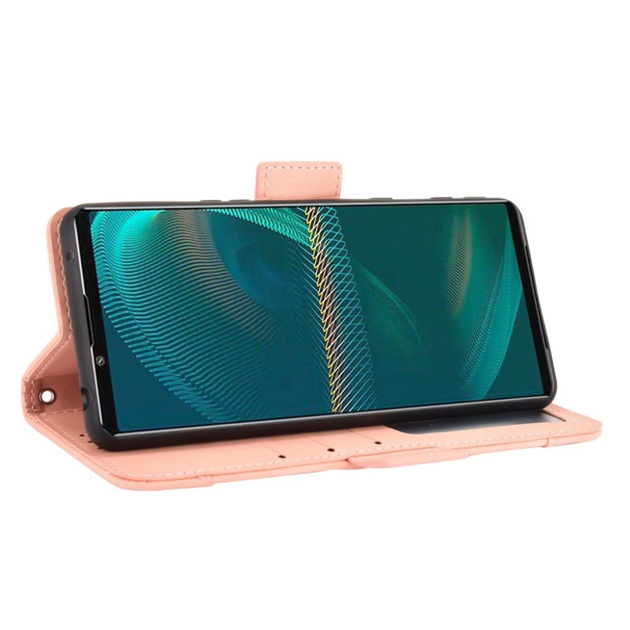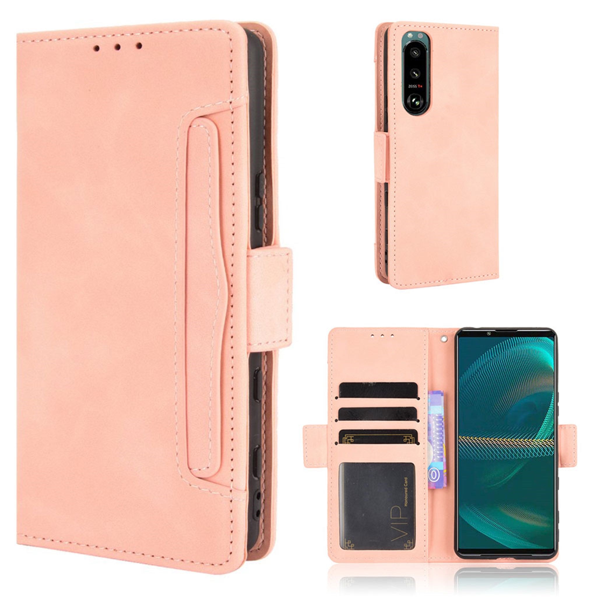 Modern-styled leather wallet case for Sony Xperia 5 III - Pink