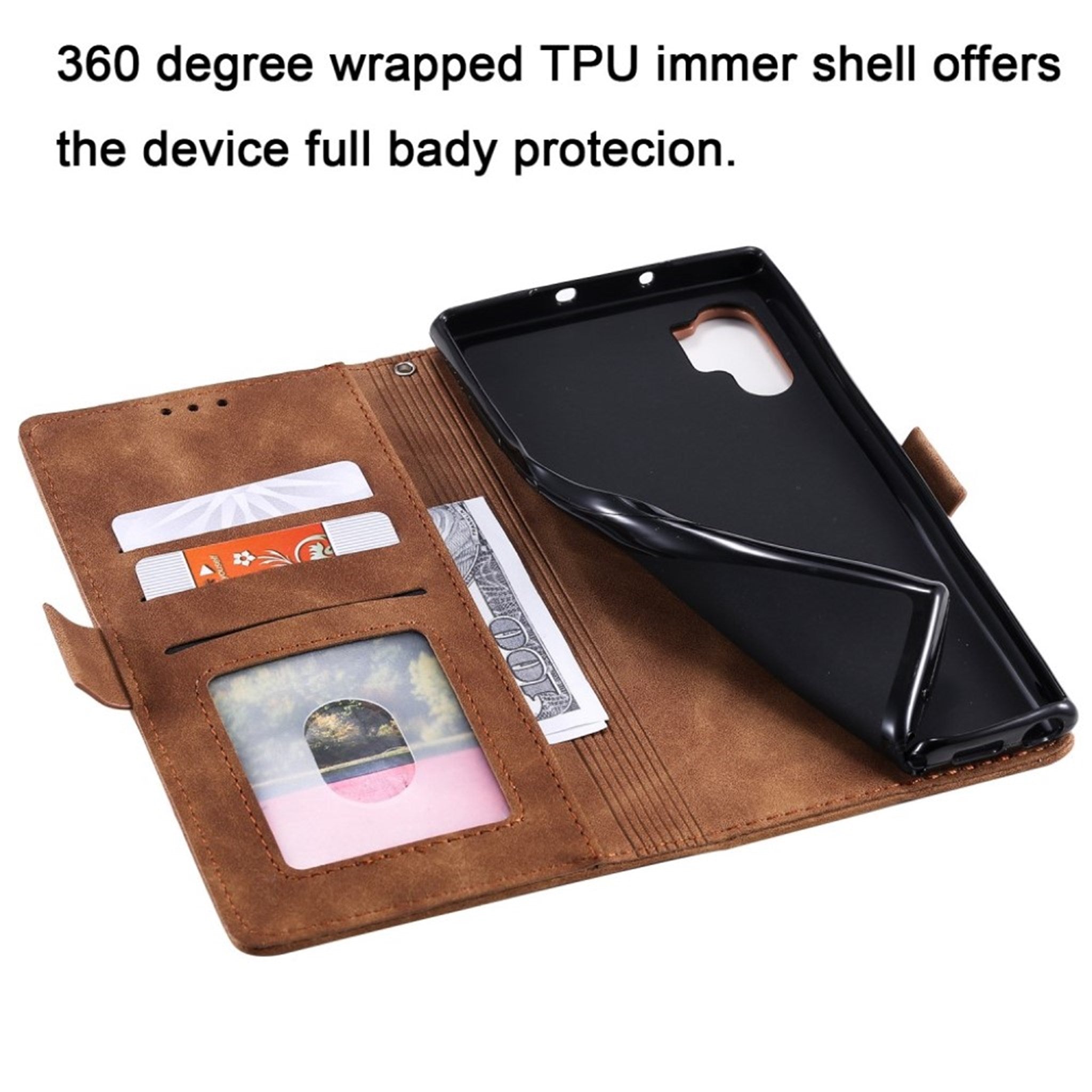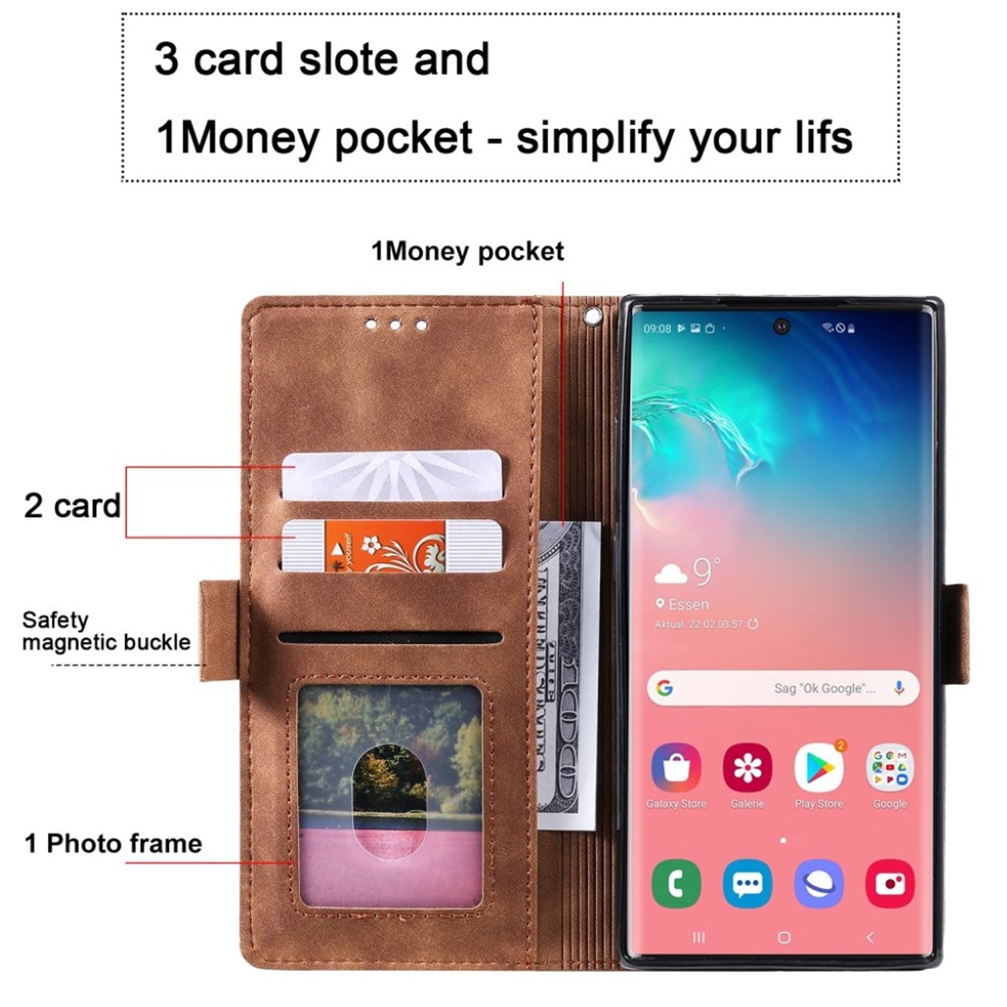 Classic luxury leather flip case for Samsung Galaxy A32 5G with multiple pockets for cards and cash. The Surburbian case is made from artificial leather with a flexible silicone shell to protect your Samsung Galaxy A32 5G.