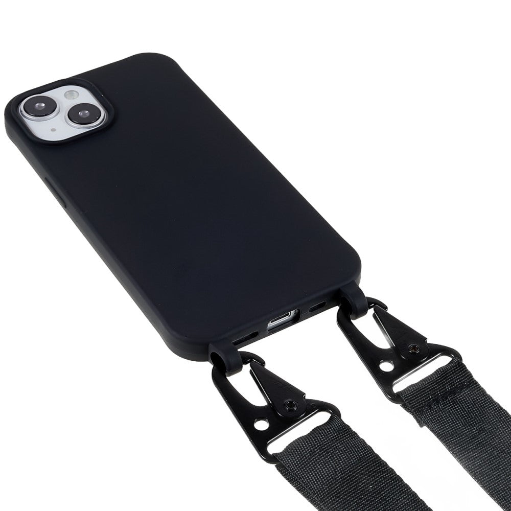 Thin TPU case with a matte finish and adjustable strap for iPhone 15 Plus Max - Black