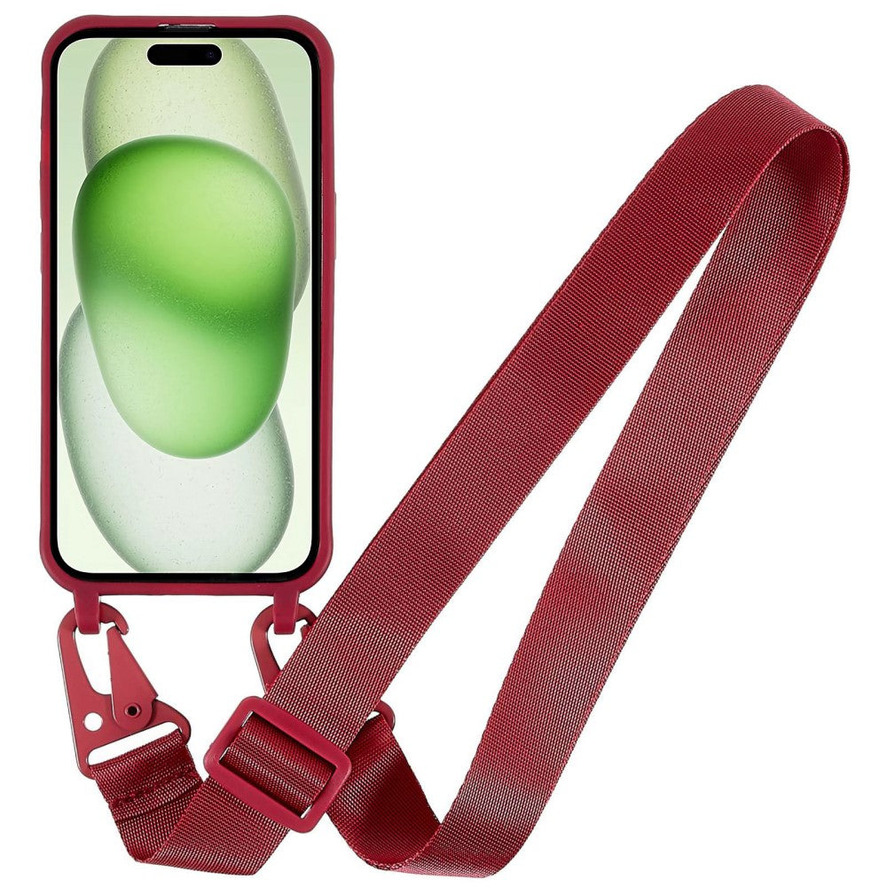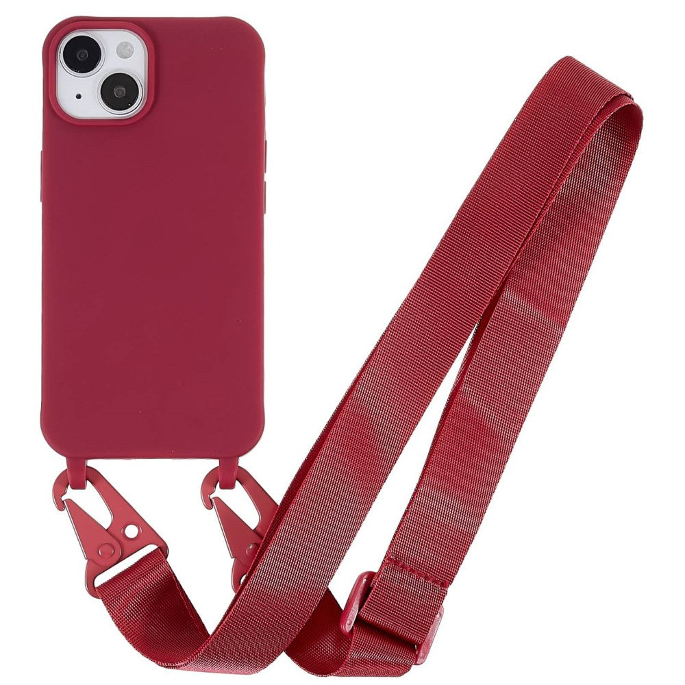 Thin TPU case with a matte finish and adjustable strap for iPhone 15 Plus Max - Wine Red