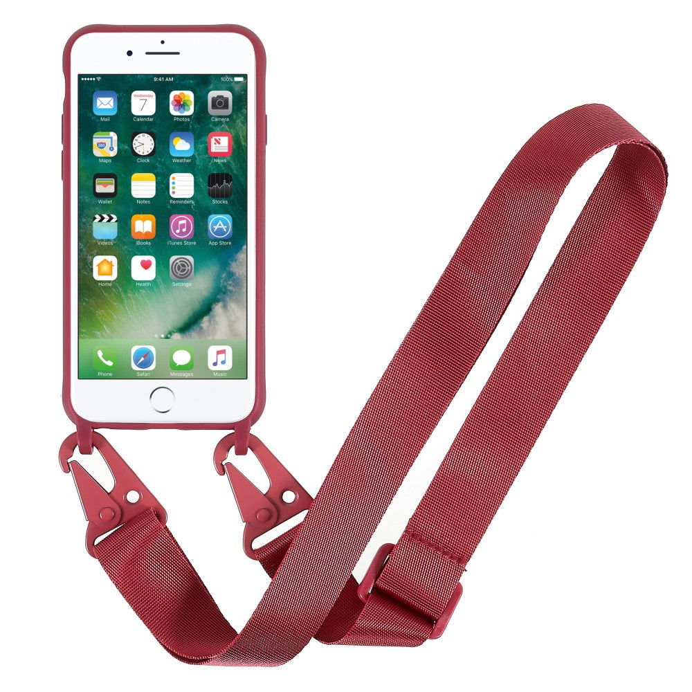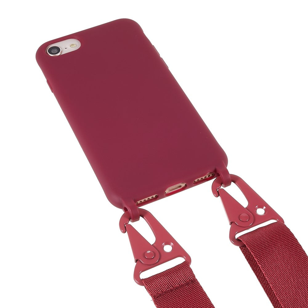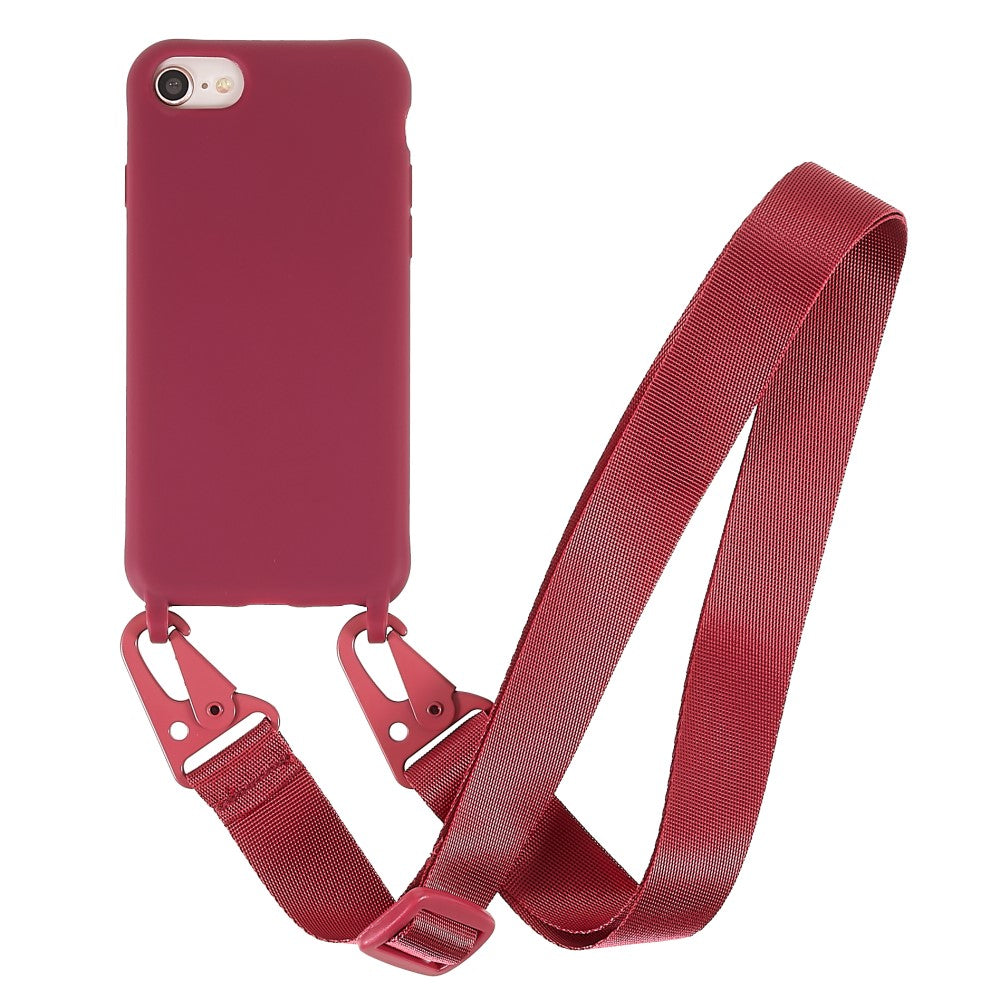 Thin TPU case with a matte finish and adjustable strap for iPhone SE (2022) / SE 2020 / 8 / 7 - Red