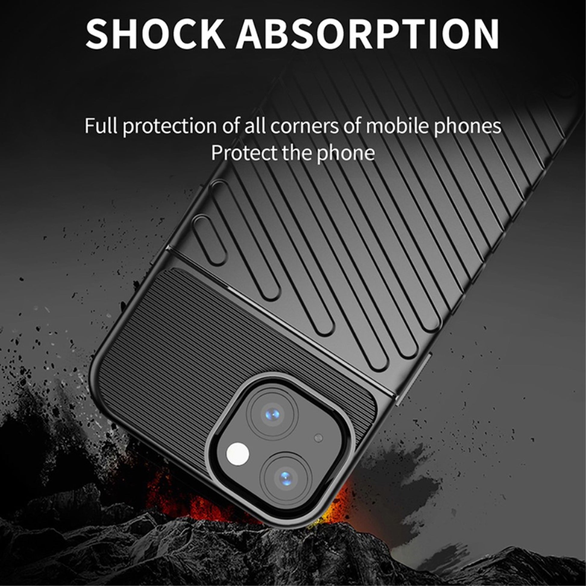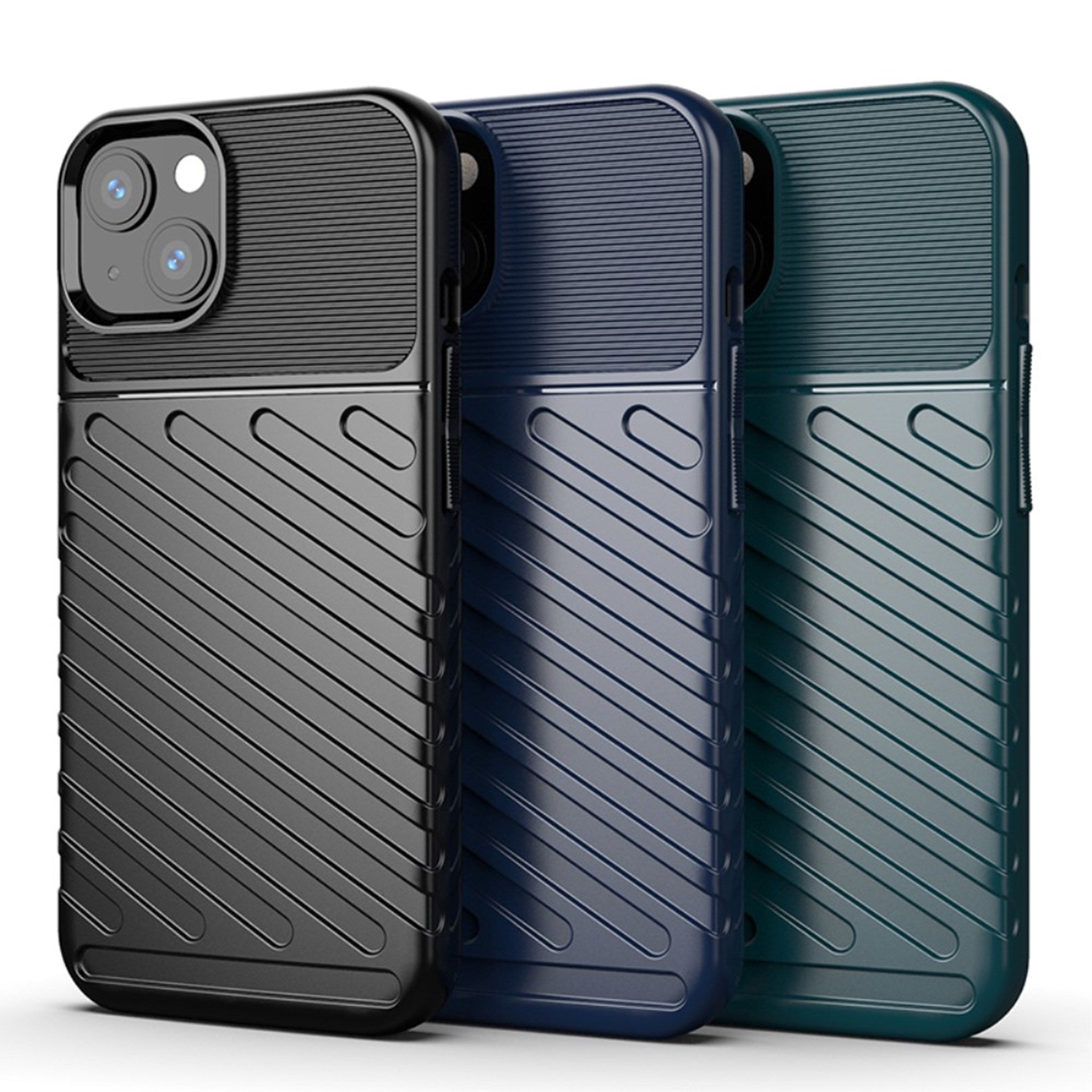Thunder case for iPhone 13 offers good protection and a rugged look with diagonal lines. It is made from a flexible, durable material. An easy way to protect your iPhone 13 from damage.