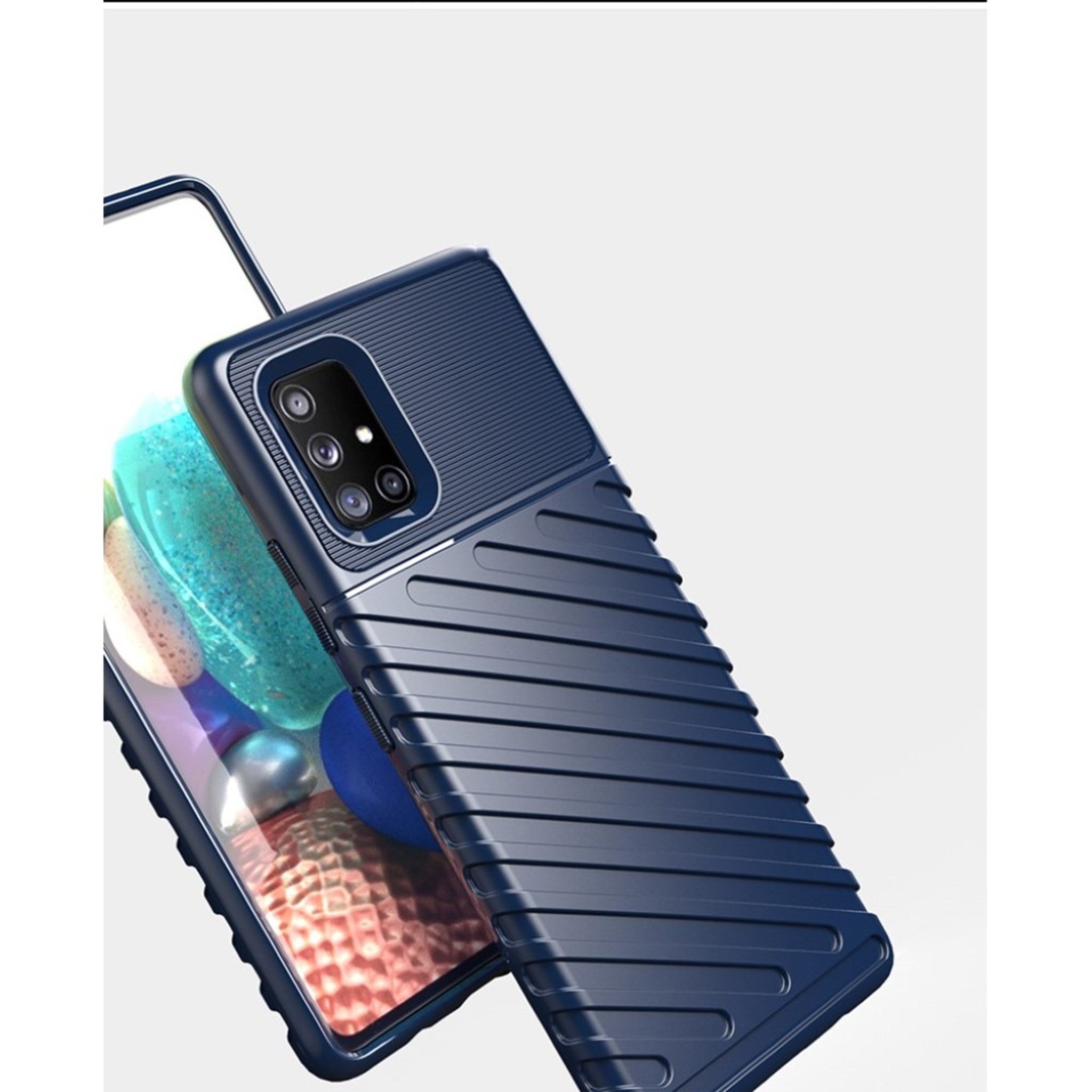 Thunder case for Samsung Galaxy A71 5G offers good protection and a rugged look with diagonal lines. It is made from a flexible, durable material. An easy way to protect your Samsung Galaxy A71 5G from damage.