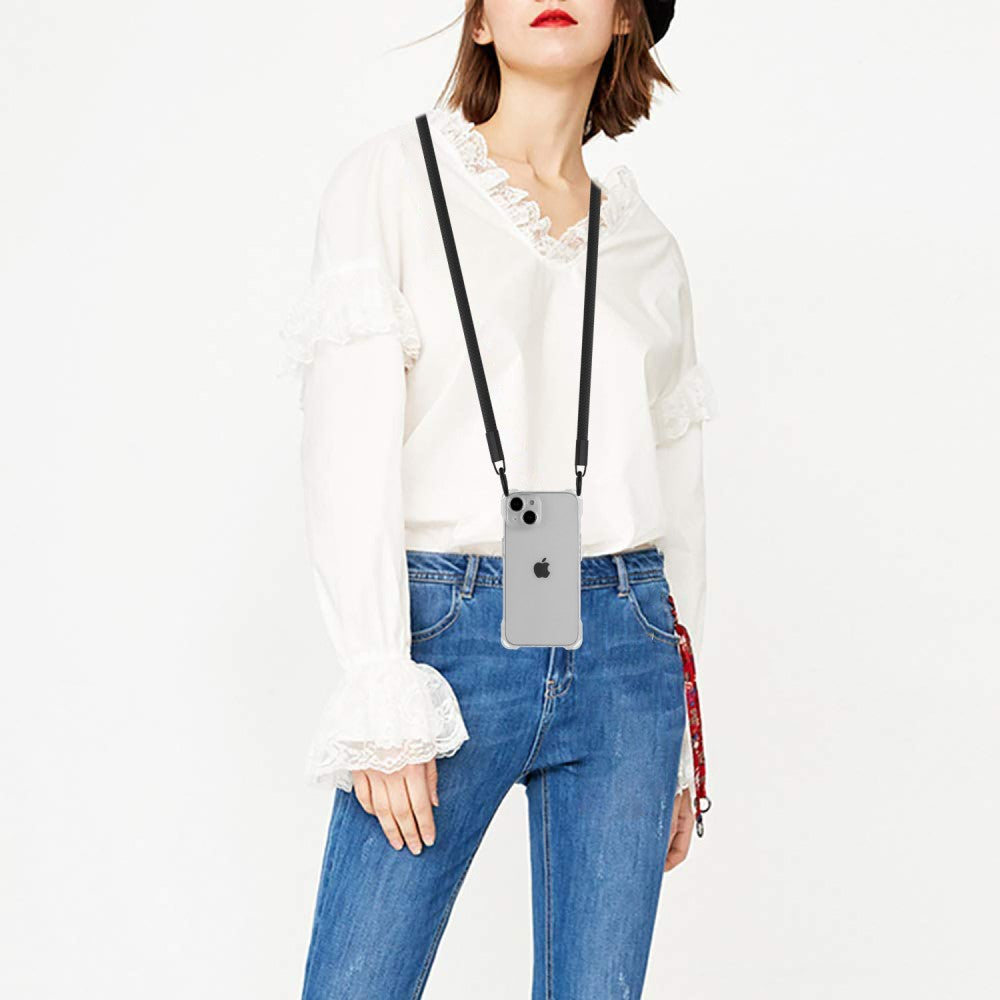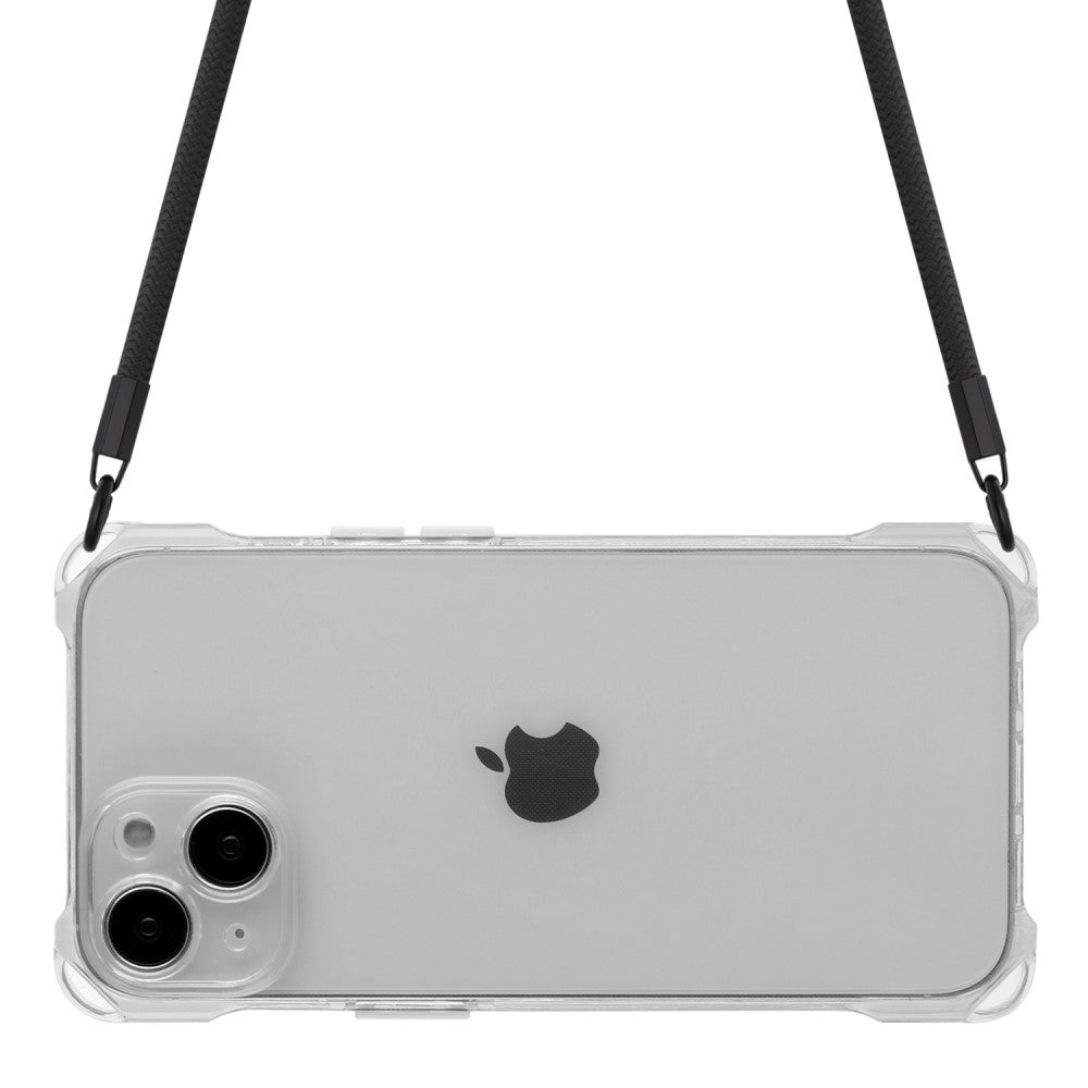TPU Cell Phone Case for iPhone 15 Plus Four Corners Drop Protection Shell Cover with Hanging Rope - Transparent