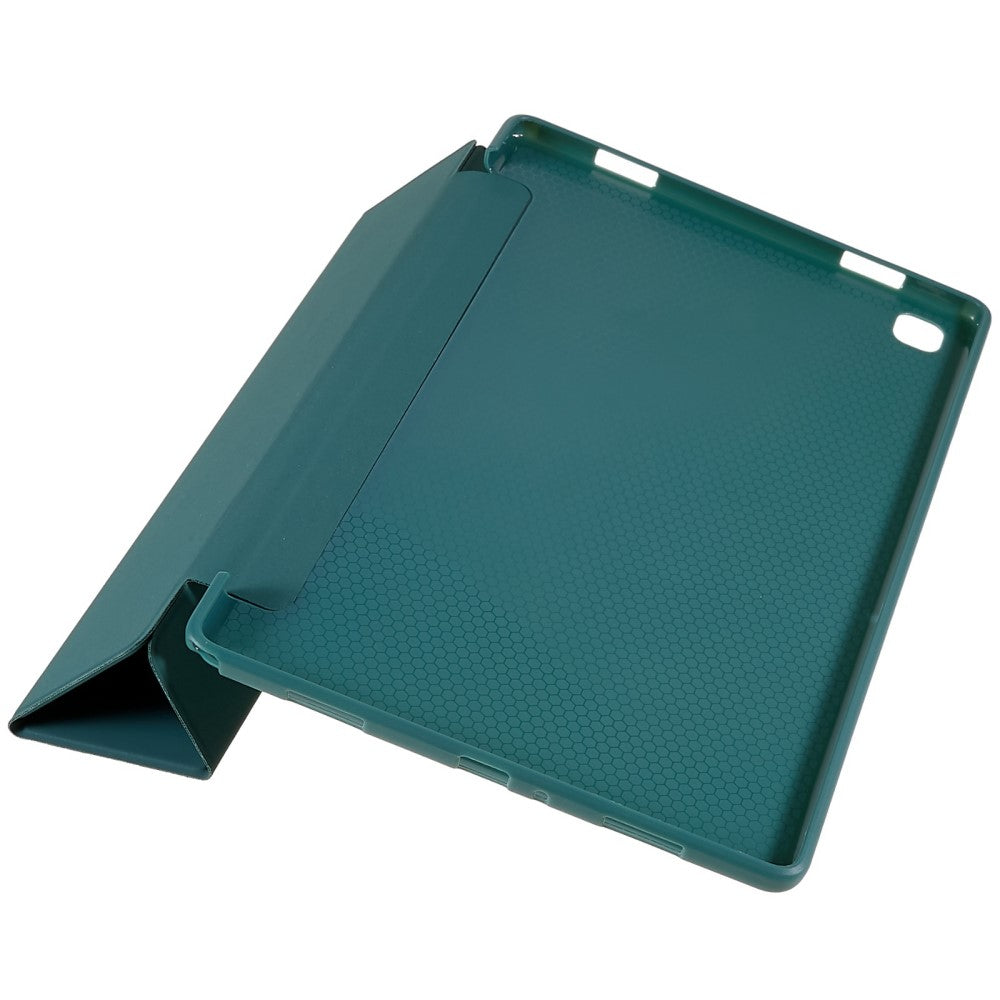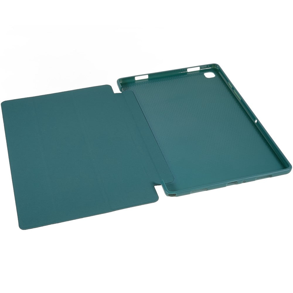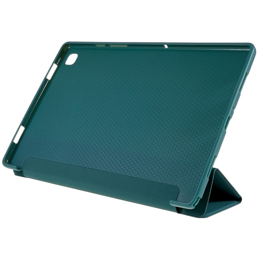 Tri-fold Leather Stand Case for Samsung Galaxy Tab A7 10.4 (2022) / Tab A7 10.4 (2020) - Blackish Green