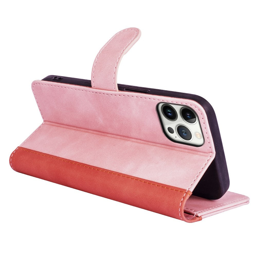 Two-color leather flip case for iPhone 13 Pro - Pink
