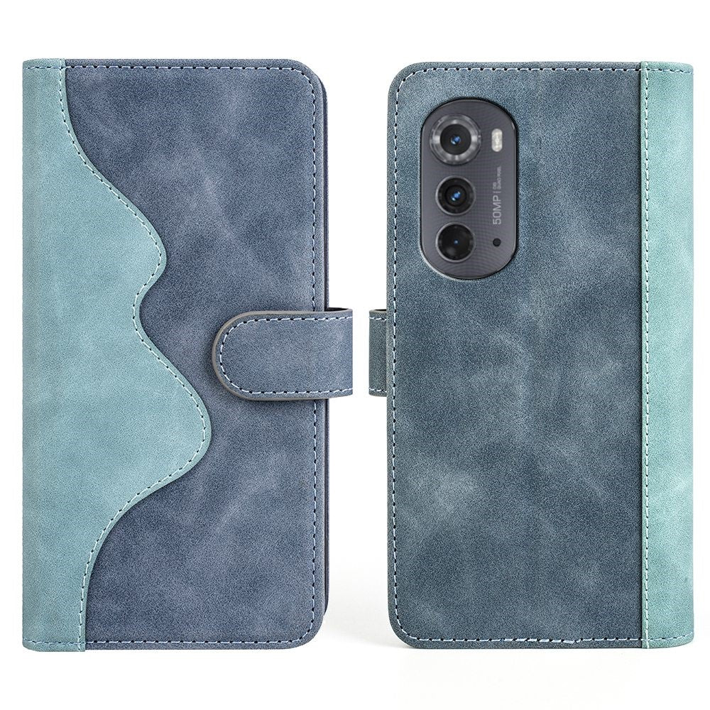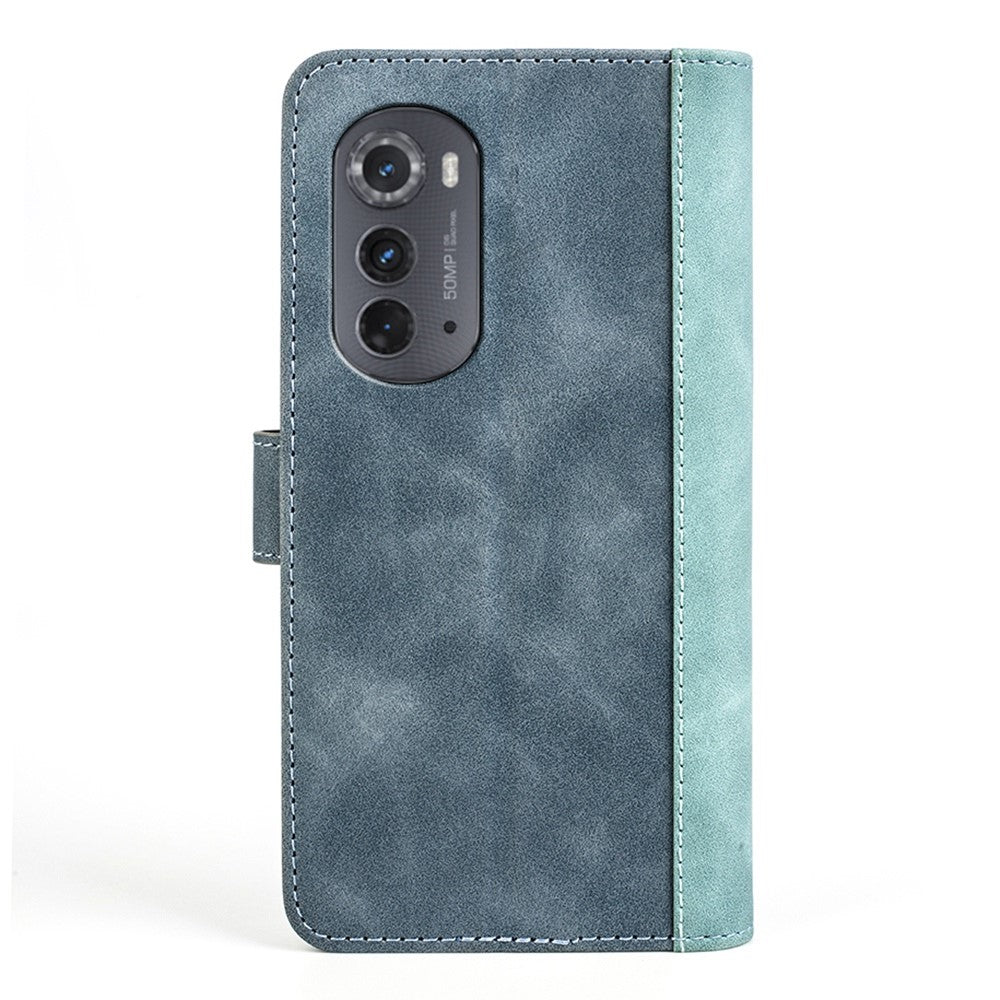 Two-color leather flip case for Motorola Moto Edge 2022 - Blue