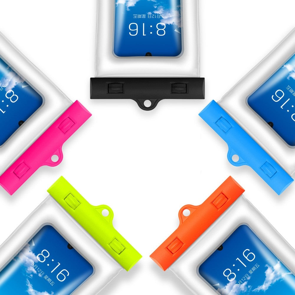 A universal size TPU waterproof phone bag fits all smartphones up to under 6.4 inches
