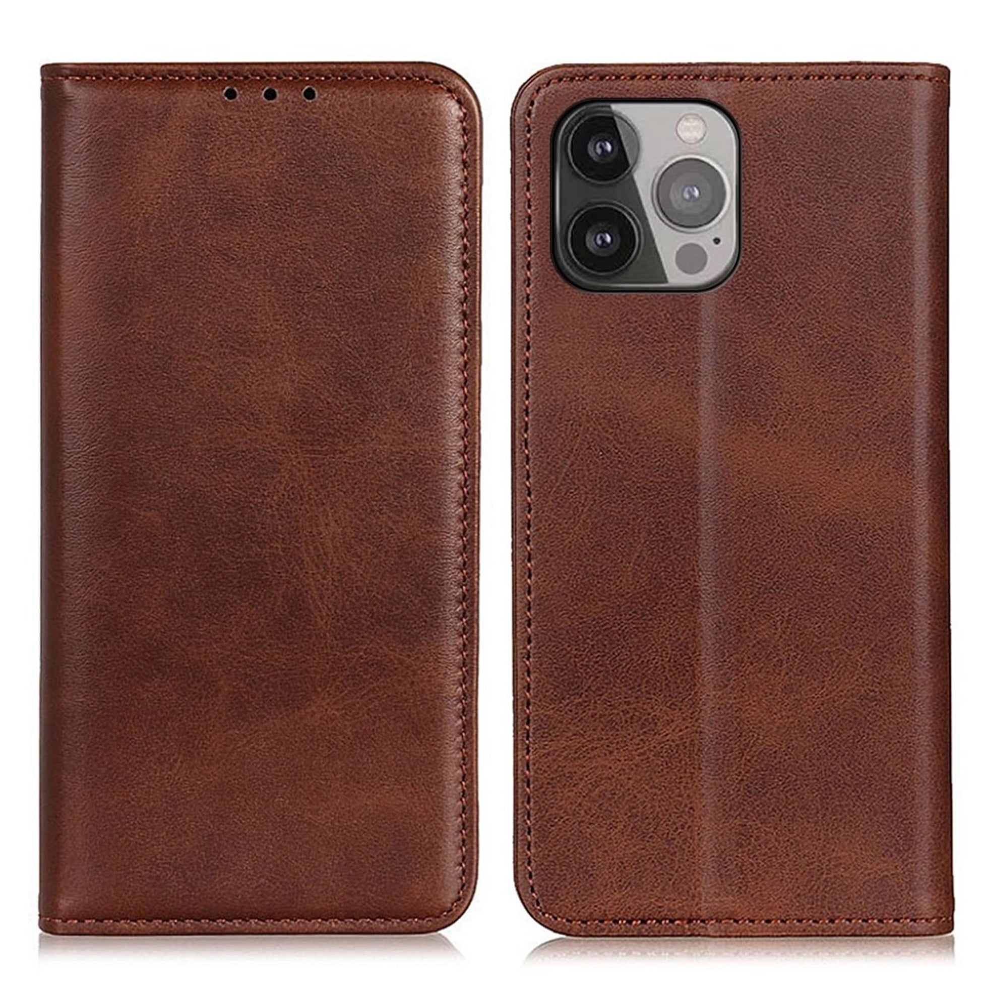 Wallet-style genuine leather flipcase for iPhone 13 Pro Max - Coffee