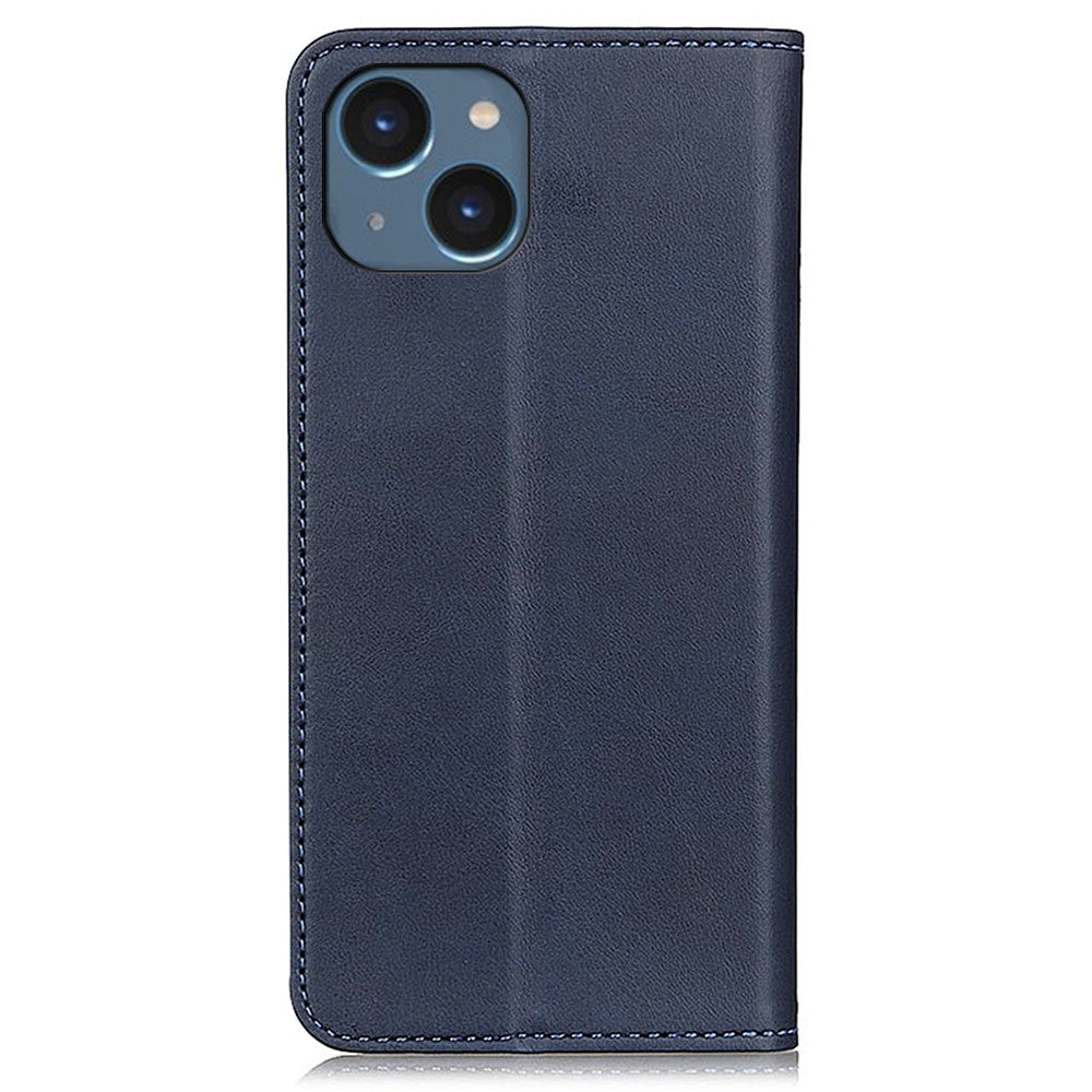 Wallet-style genuine leather flipcase for iPhone 15 Plus - Blue