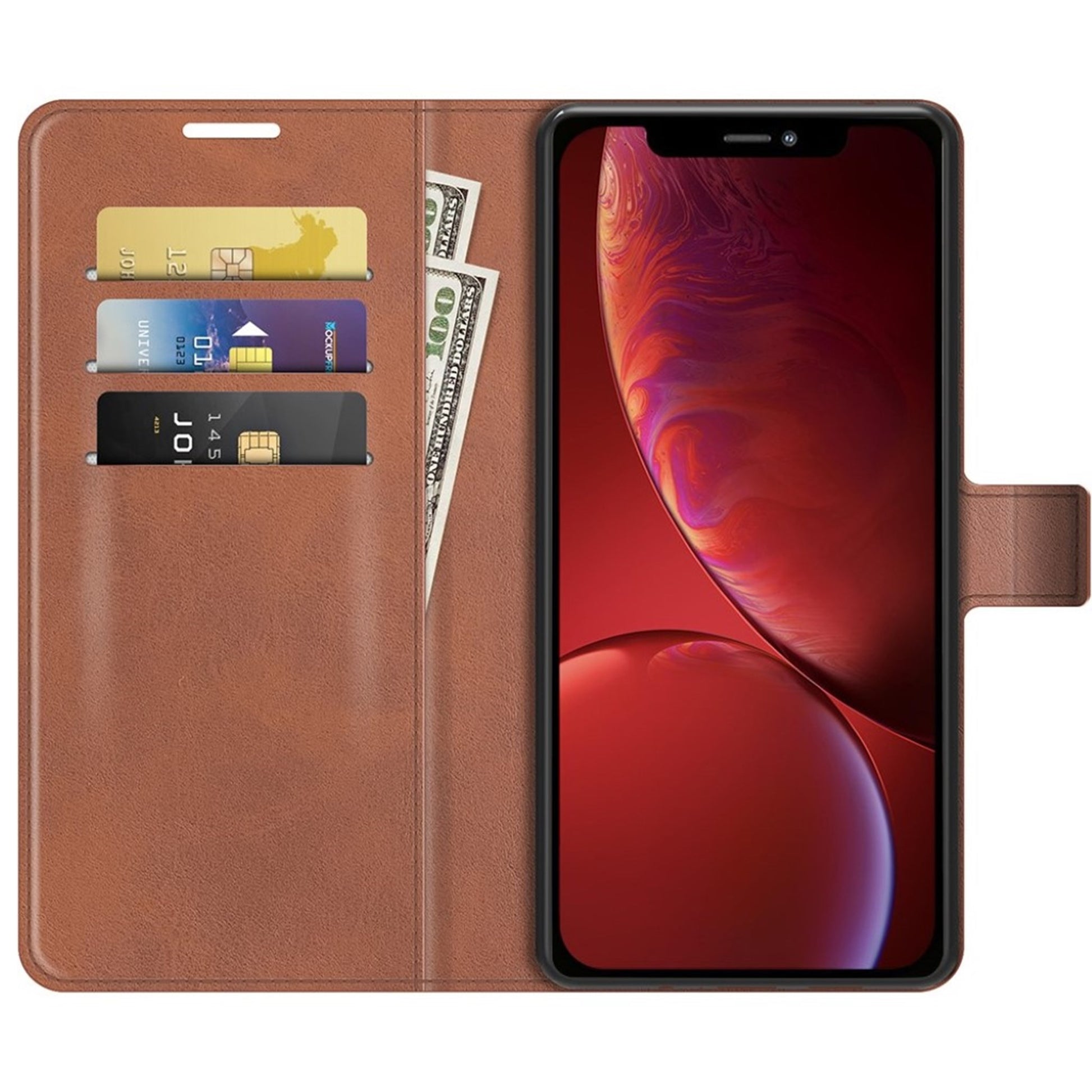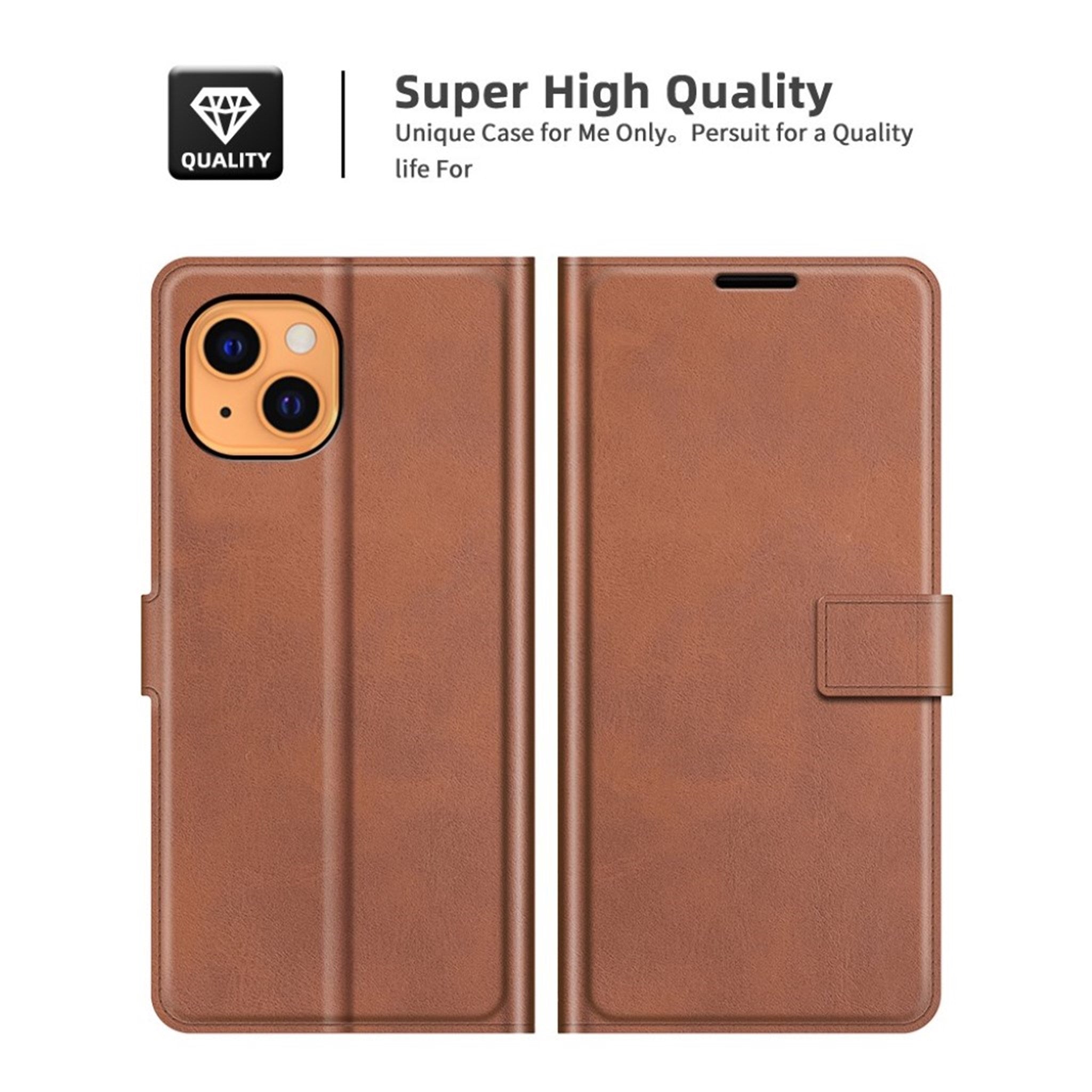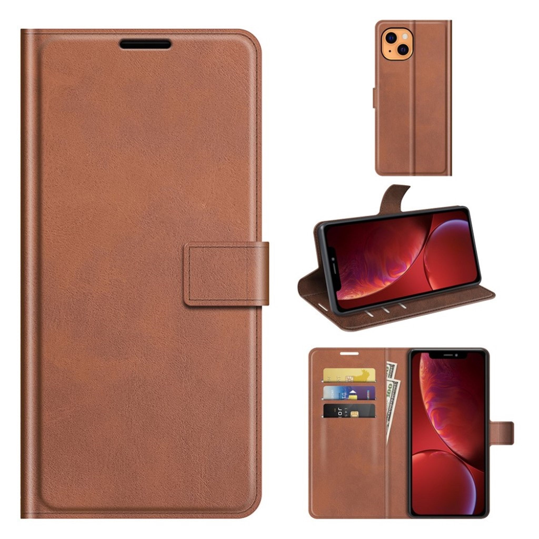 Wallet-style leather case for iPhone 13 - Brown