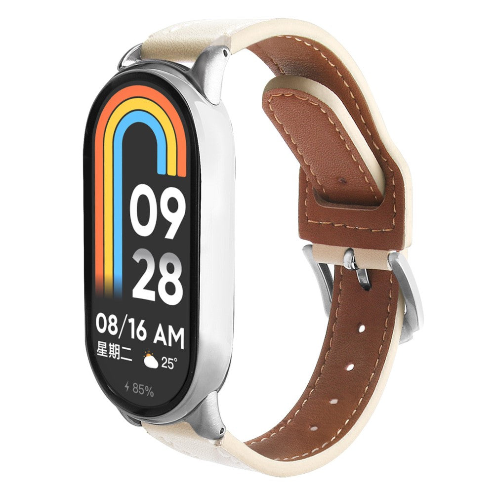 Watchband Xiaomi Smart Band 9 NFC / 9 / 8 NFC / 8 Microfiber Leather Watch Strap with Silver Buckle - Beige