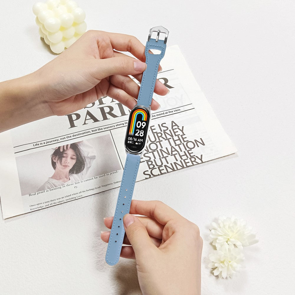 Watchband Xiaomi Smart Band 9 NFC / 9 / 8 NFC / 8 Microfiber Leather Watch Strap with Silver Buckle - Blue