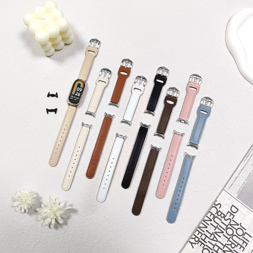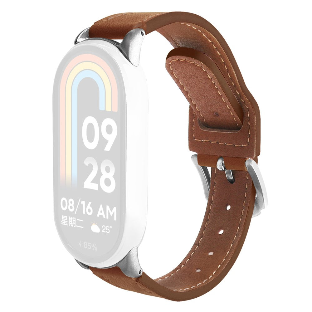 Watchband Xiaomi Smart Band 9 NFC / 9 / 8 NFC / 8 Microfiber Leather Watch Strap with Silver Buckle - Brown
