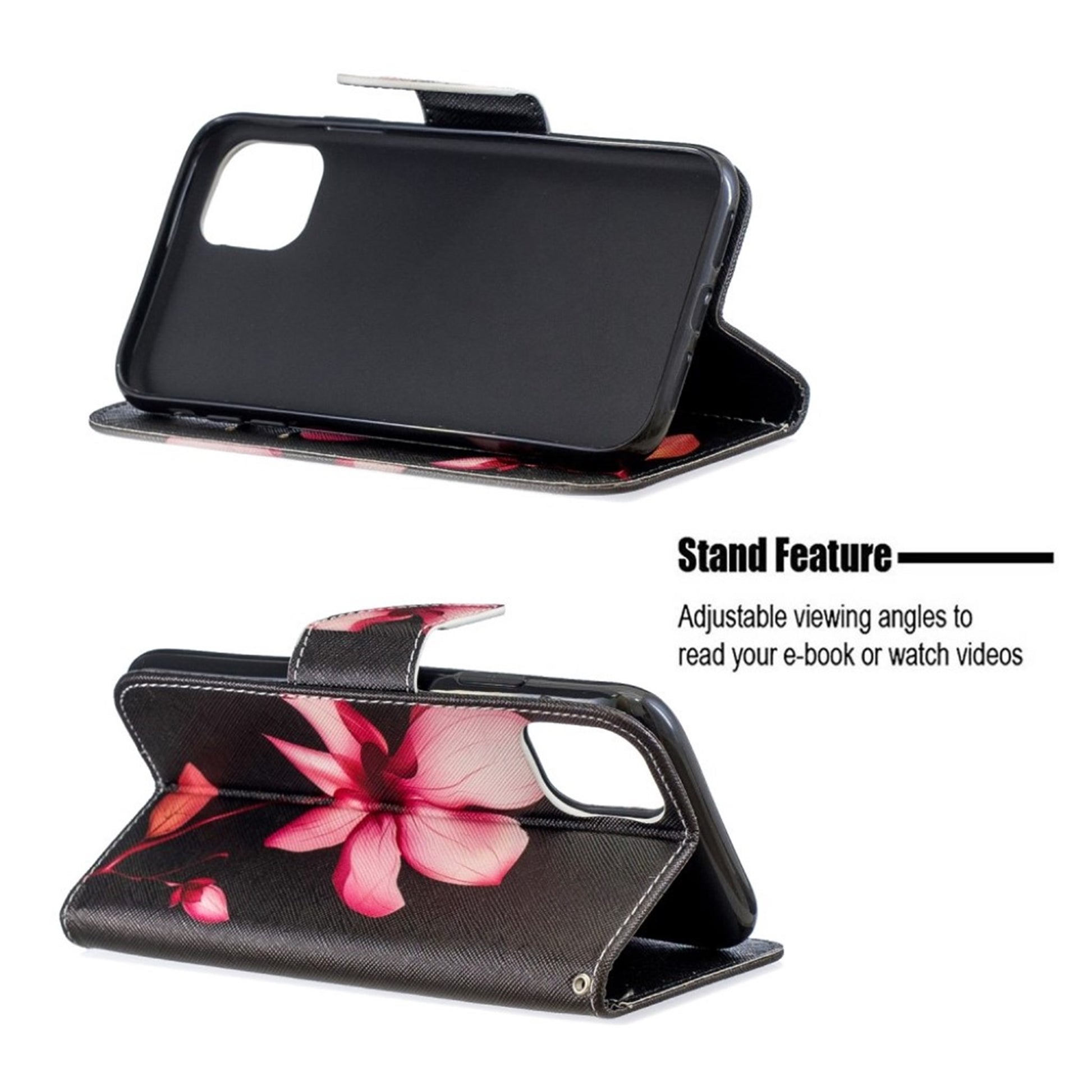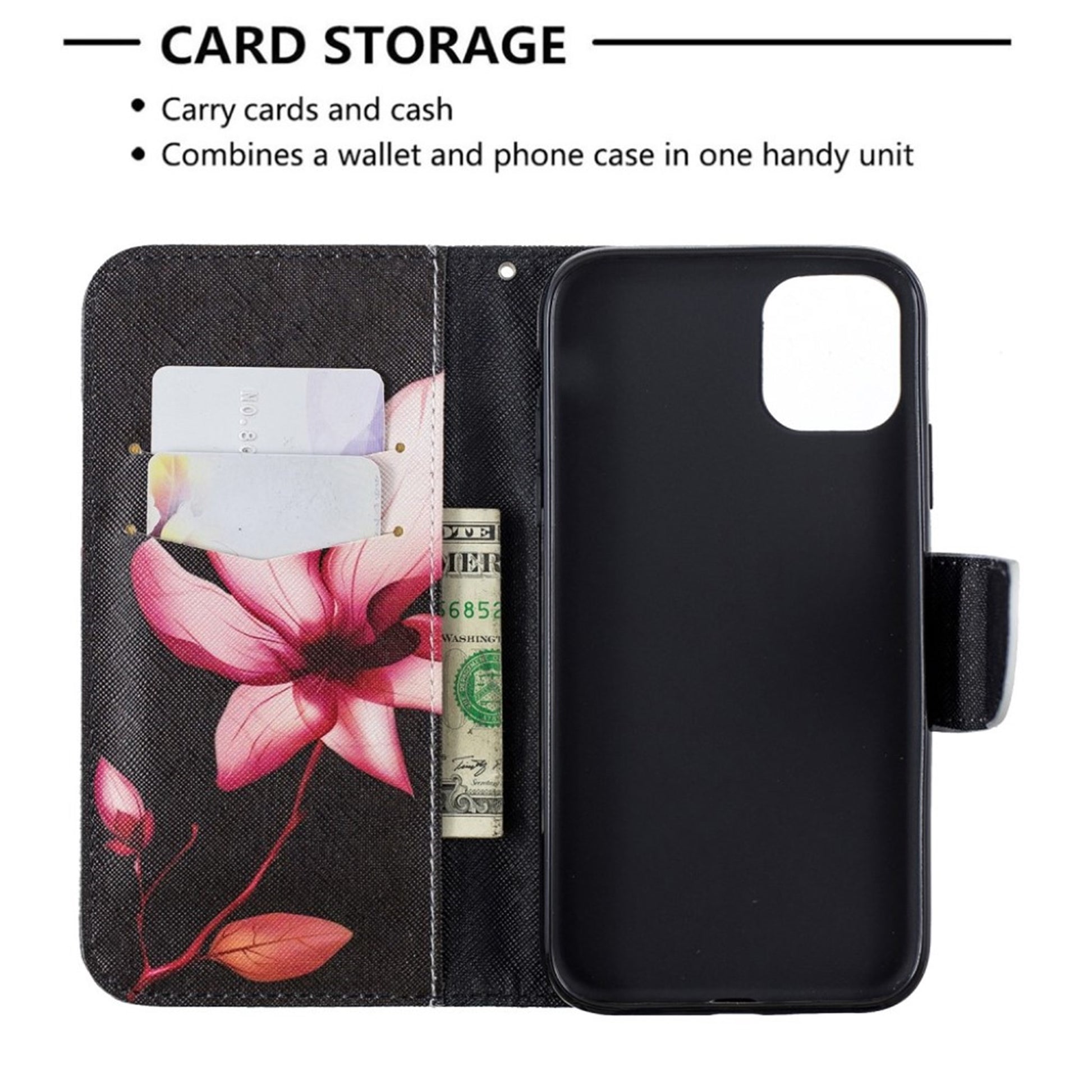 A iPhone 11 case with characteristic print made from durable imitation leather. The Wonderland case features two card slots and a pocket for cash notes. It has a magnetic clasp to keep the case closed and your iPhone 11 protected. The back can be folded to hold the mobile in an angled position for convenient viewing.