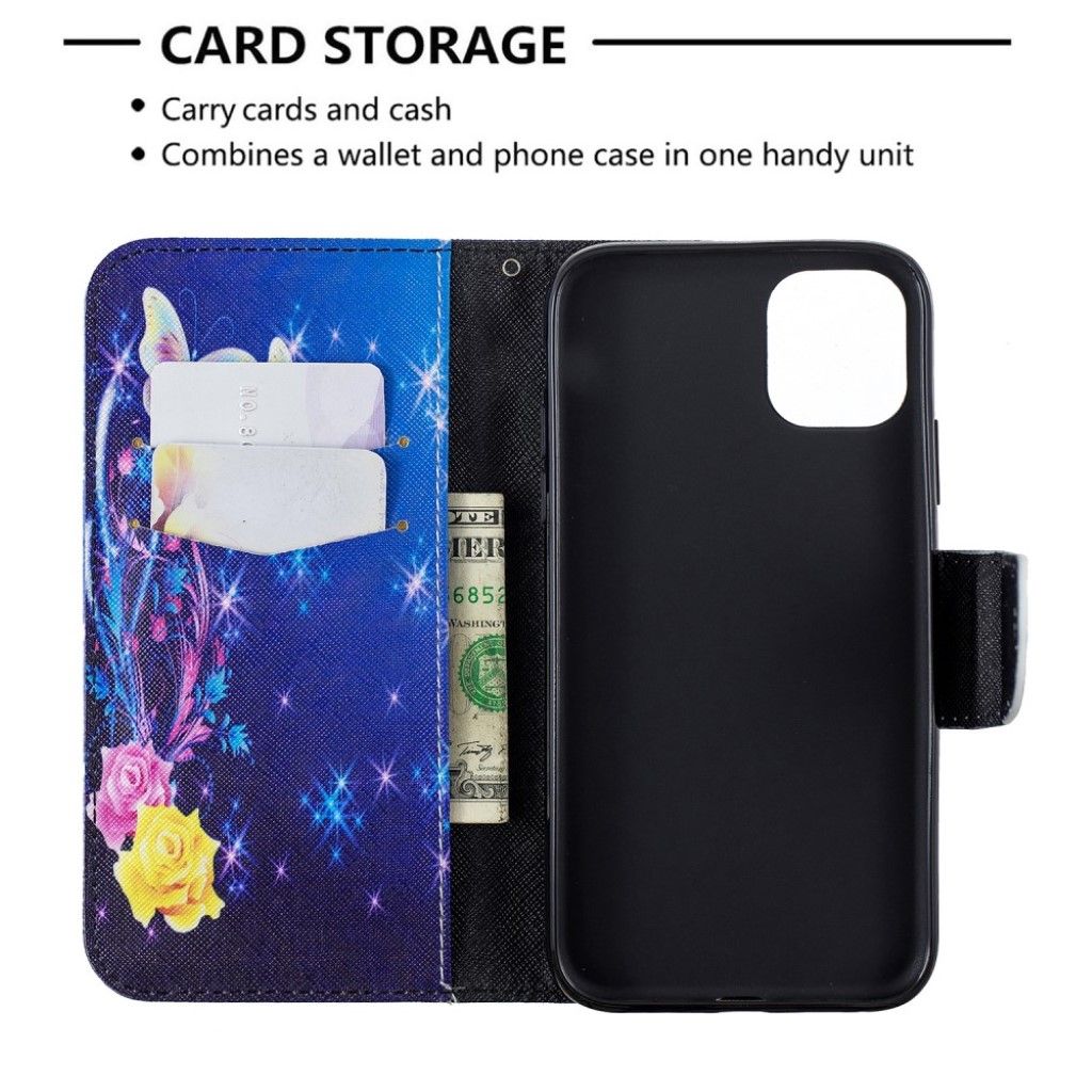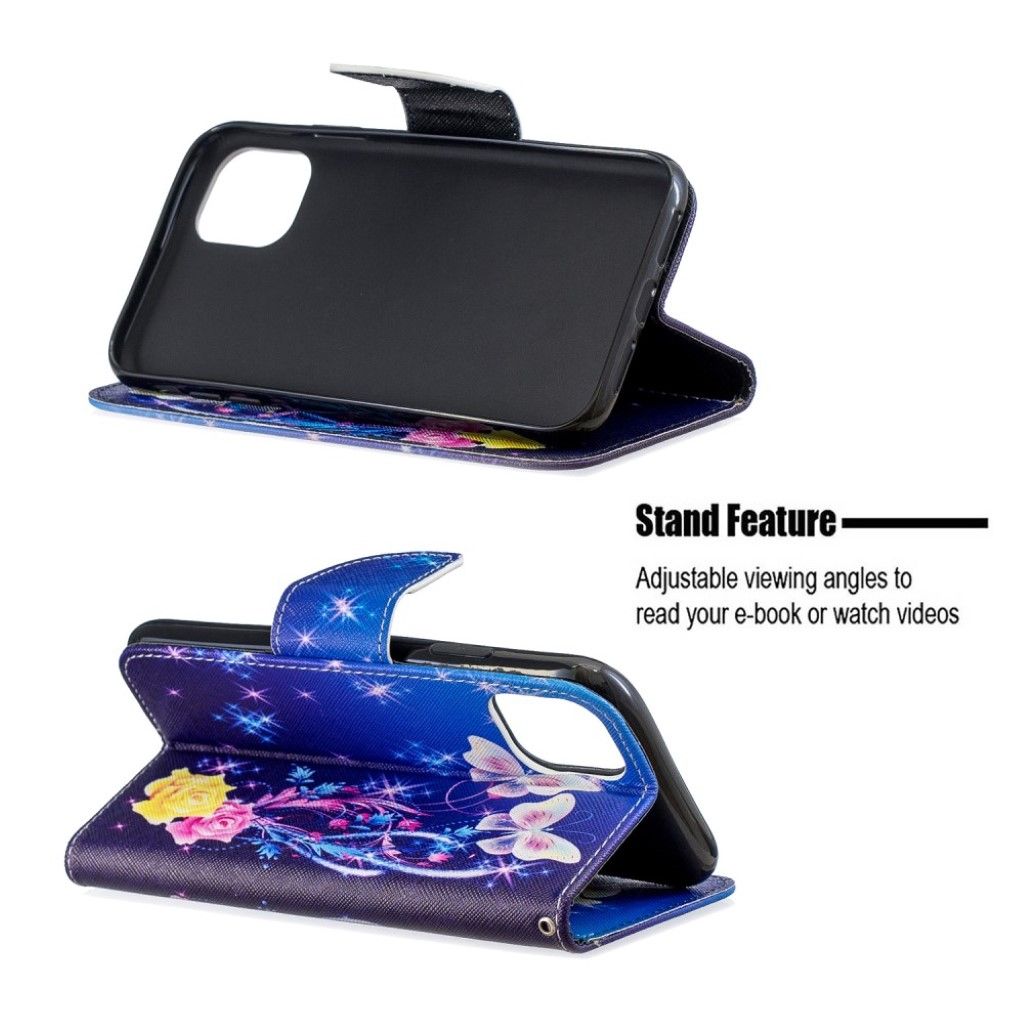 A iPhone 11 case with characteristic print made from durable imitation leather. The Wonderland case features two card slots and a pocket for cash notes. It has a magnetic clasp to keep the case closed and your iPhone 11 protected. The back can be folded to hold the mobile in an angled position for convenient viewing.