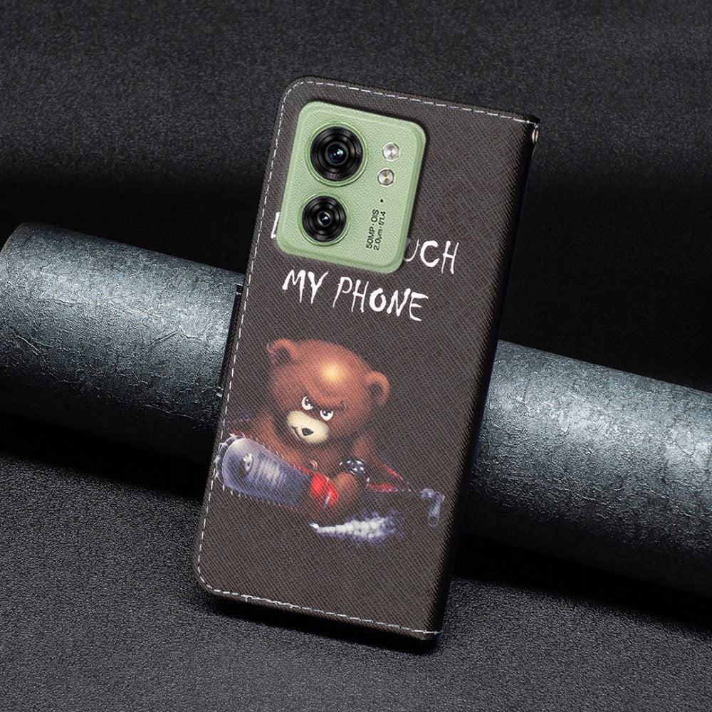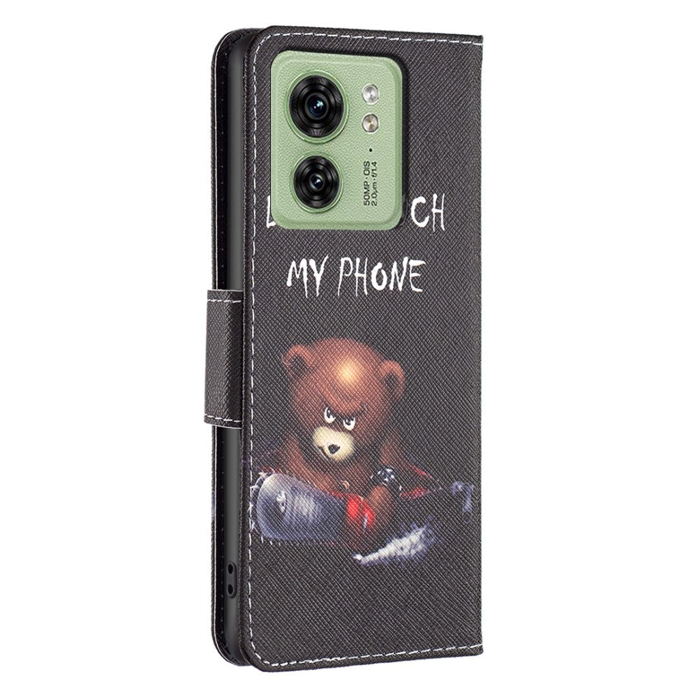 A Motorola Edge 40 case with characteristic print made from durable imitation leather. The Wonderland case features two card slots and a pocket for cash notes. It has a magnetic clasp to keep the case closed and your Motorola Edge 40 protected. The back can be folded to hold the mobile in an angled position for convenient viewing.