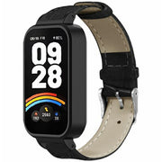 Xiaomi Redmi Band 3 / 9 Active Watch Band with Bump Resistant Case Bamboo Texture Leather Replacement Strap - Black