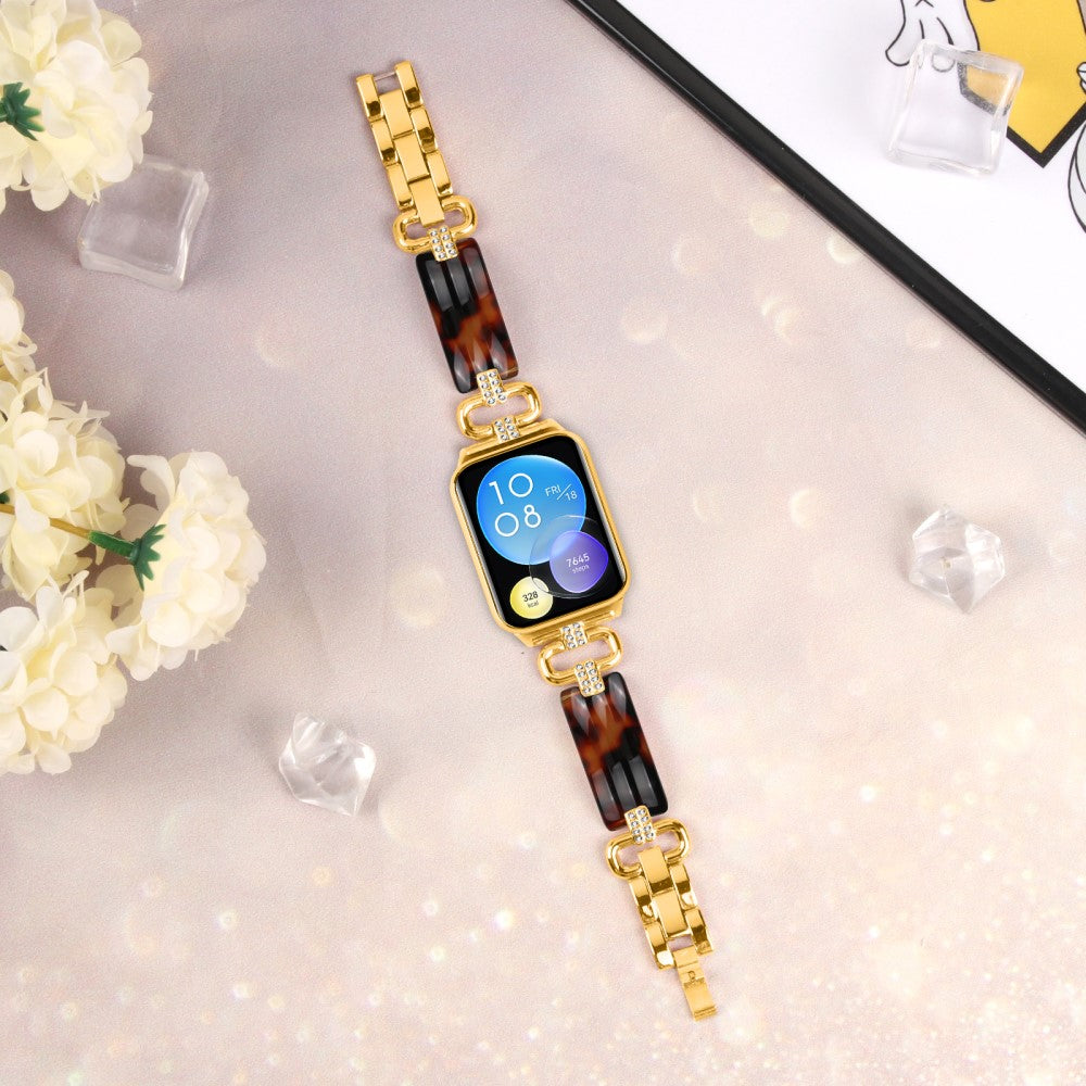 Upgrade your smartwatch with this durable resin watch strap embellished with rhinestones for a touch of elegance and style. The stainless steel buckle ensures a secure fit, while the fine workmanship adds to its overall appeal. The comfortable design makes it ideal for all-day wear. Say goodbye to your old, broken watch strap and replace it with this fashionable alternative. This versatile strap is sure to elevate your smartwatch and give it a personalized touch. Whether you're dressing up for a special occasion or simply want to refresh your look, this watch strap is the perfect accessory for any outfit. Made to last, this strap is a timeless and practical addition to your accessory collection.