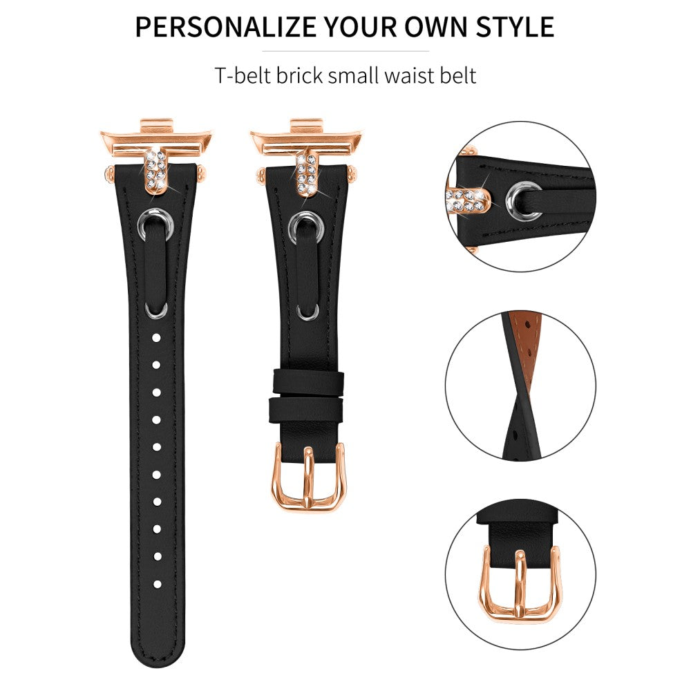Xiaomi Smart Band 8 Pro Rhinestone Genuine Cow Leather Watch Strap - Black