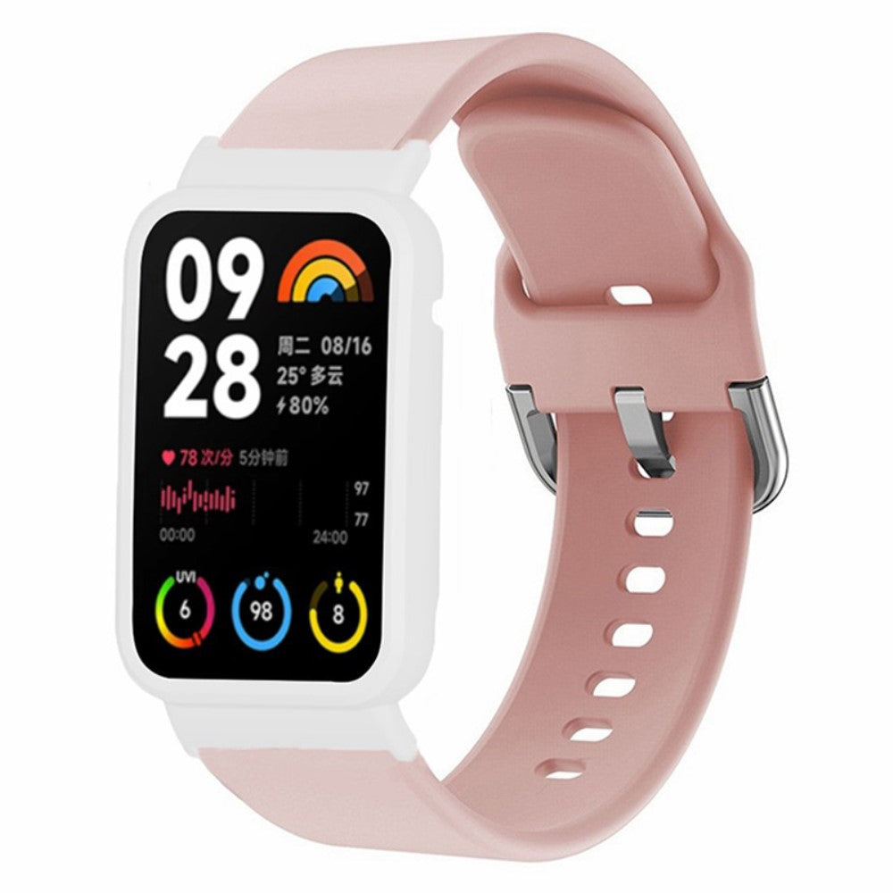 Xiaomi Smart Band 8 Pro Silicone Sport Watch Band with Watch Case - Pink+White Shell