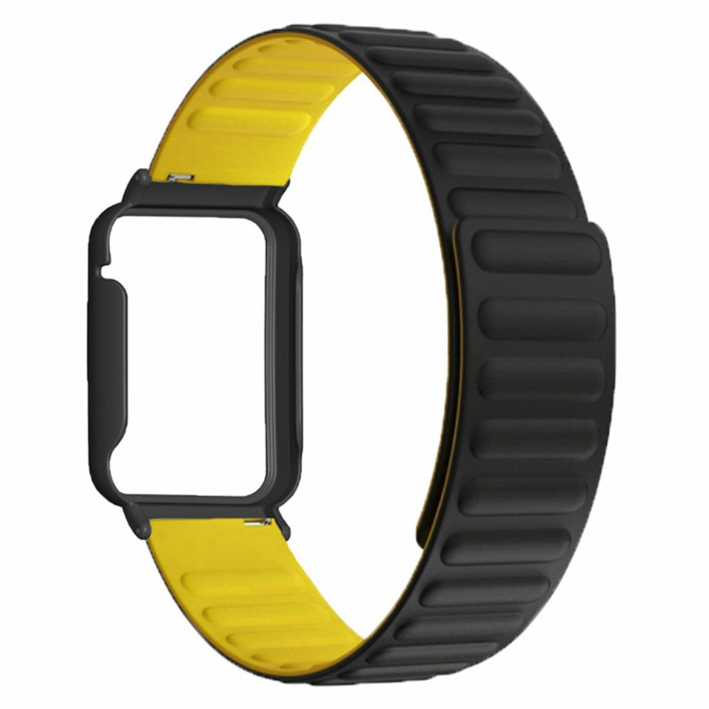 Xiaomi Smart Band 8 Pro Silicone Watch Band Magnetic Strap with Black Watch Case - Black+Yellow