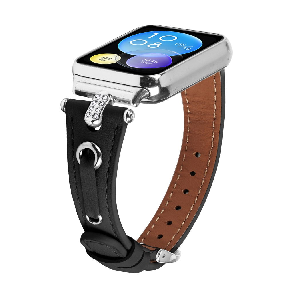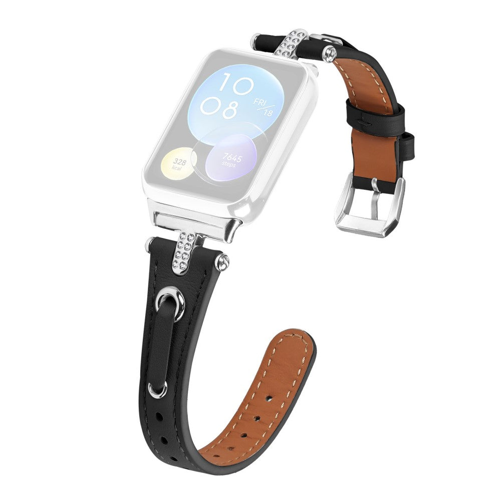 Xiaomi Smart Band 8 Pro Slim Strap Rhinestone Genuine Cow Leather Watch Band - Black