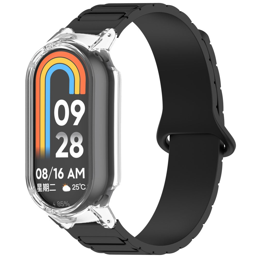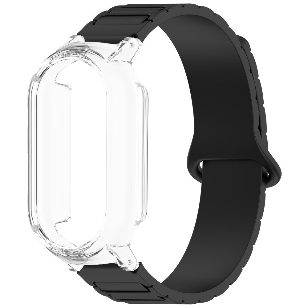 Xiaomi Smart Band 9 NFC / 9 Magnetic Silicone Strap Dual Color Wristband with Bump Resistant Protective Frame - Black+Clear