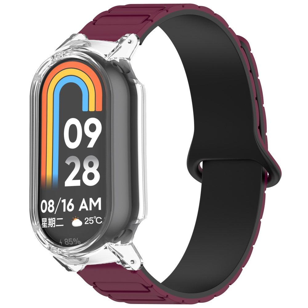 Xiaomi Smart Band 9 NFC / 9 Magnetic Silicone Strap Dual Color Wristband with Bump Resistant Protective Frame - Wine Red+Black+Clear